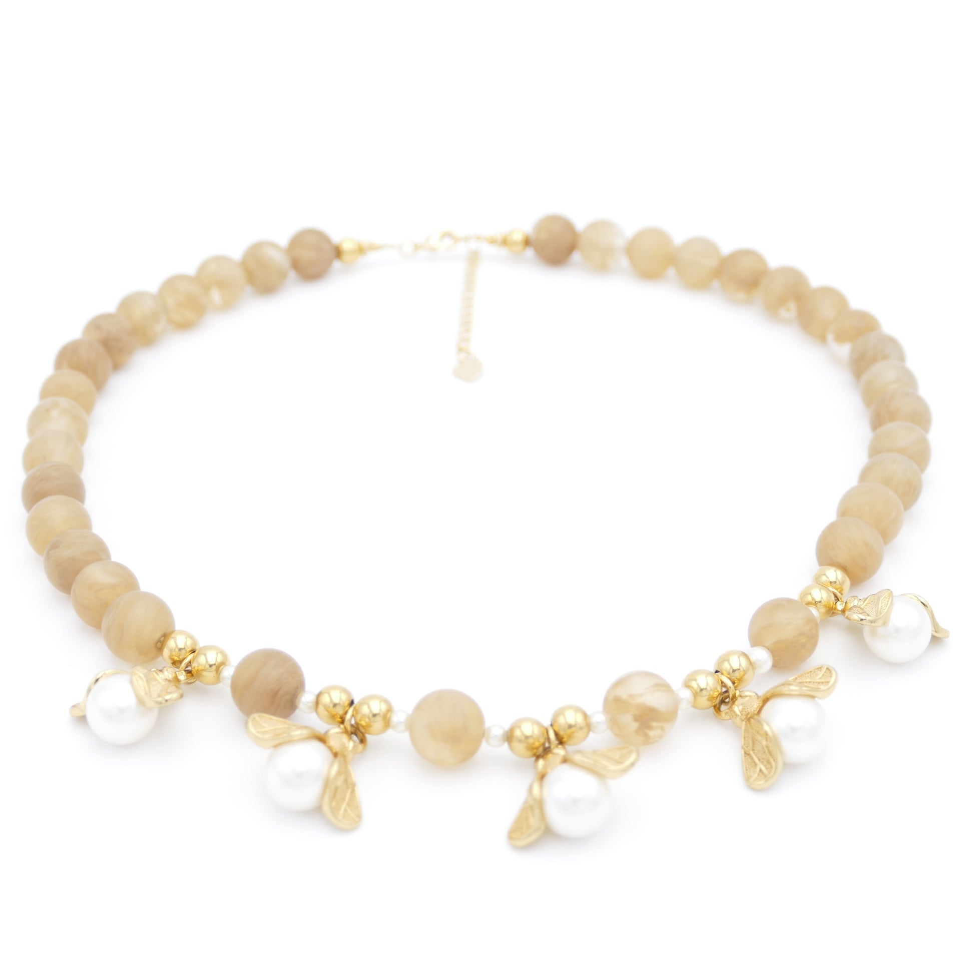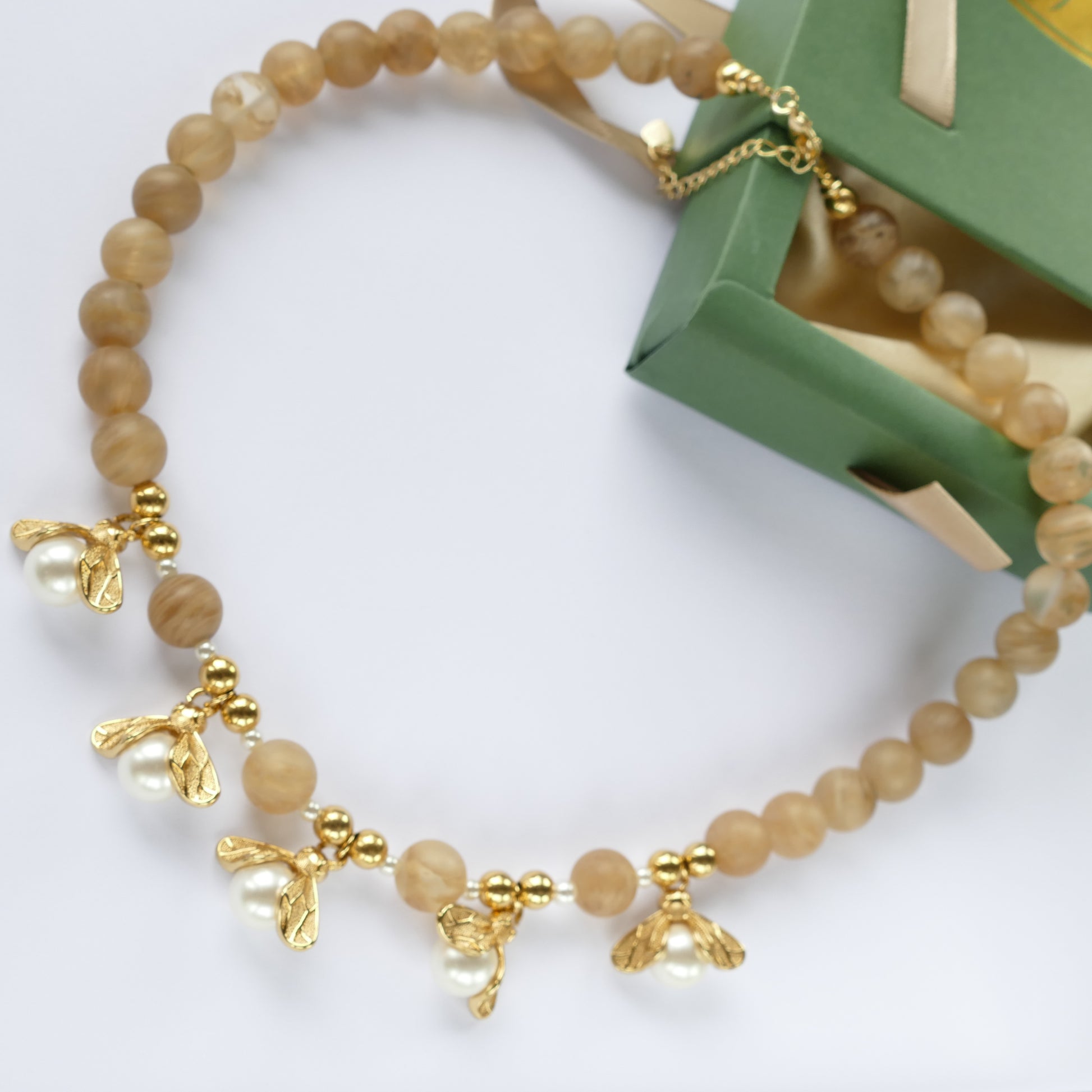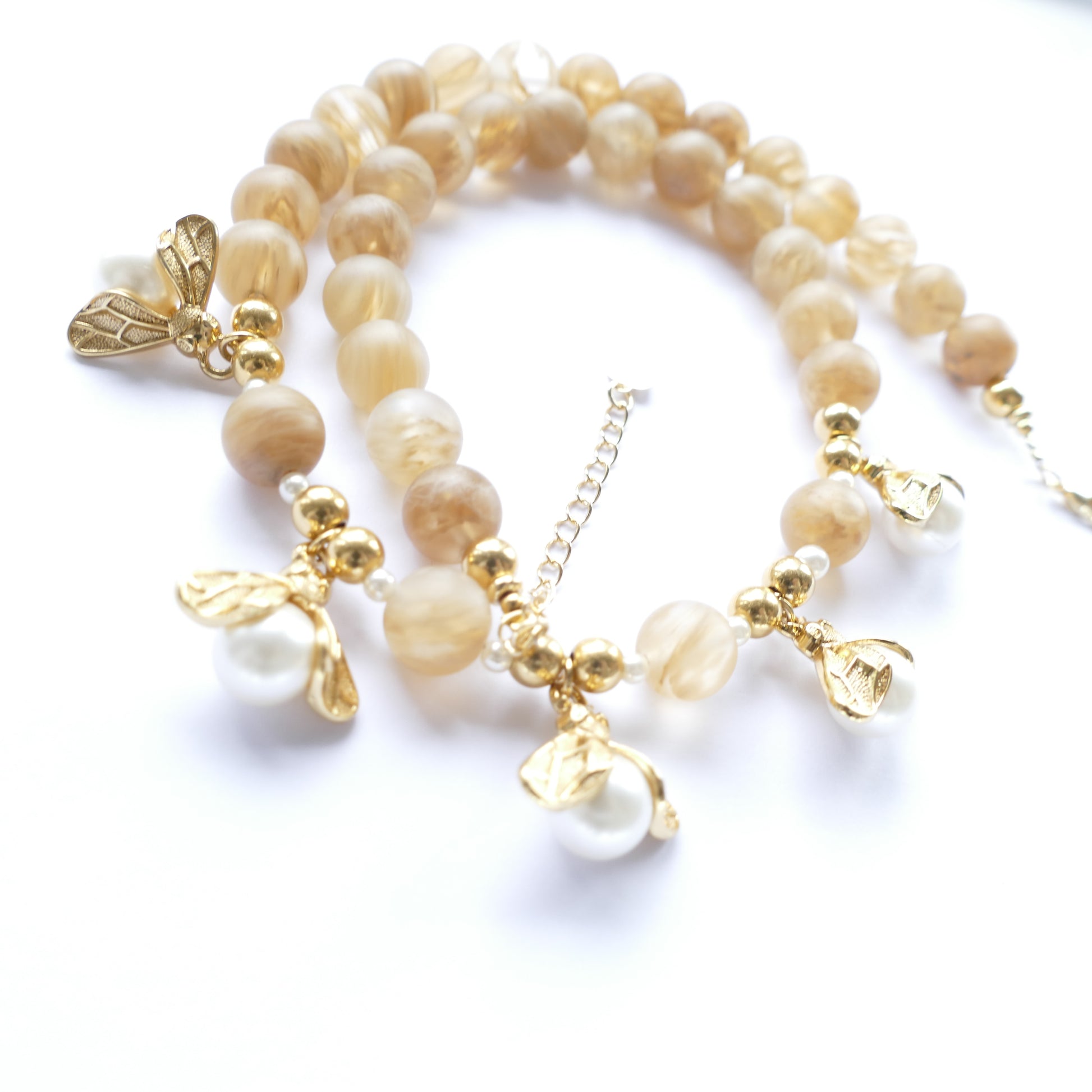 - Glasperlen, Perle und Messing-Vergoldetem.