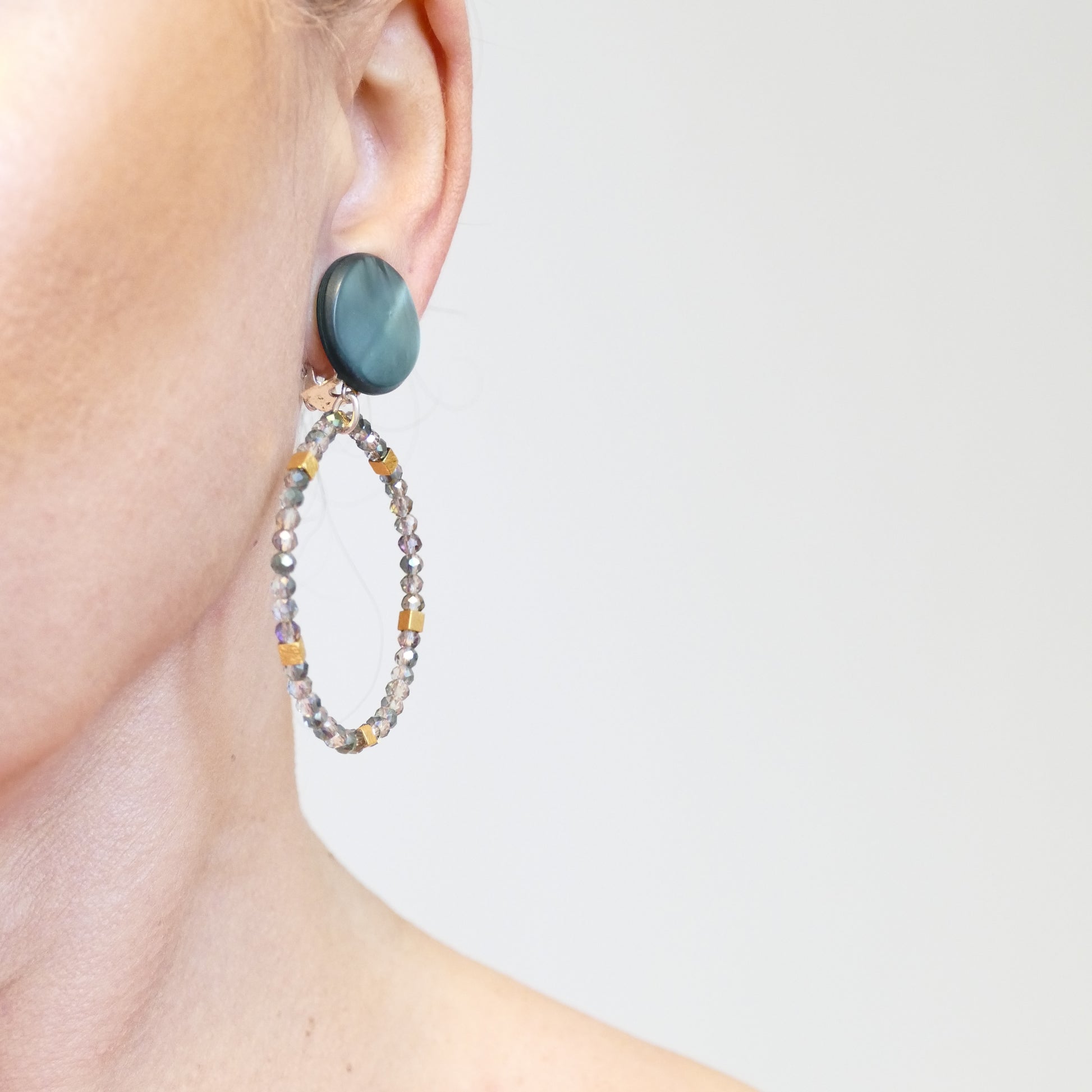 Agnes Creole Ohrclips vereinen zeitlose Eleganz mit modernem Komfort. Die wunderschönen blauen Kristalle fangen das Licht auf faszinierende Weise ein, während die goldenen Matt-Elemente einen raffinierten Kontrast schaffen. Dank des praktischen Ohrclip-Systems sitzen sie sicher und angenehm – perfekt für den ganzen Tag, ohne Ohrlöcher zu benötigen. Ein Statement-Piece, das mühelos jeden Look aufwertet und dabei höchsten Tragekomfort bietet.