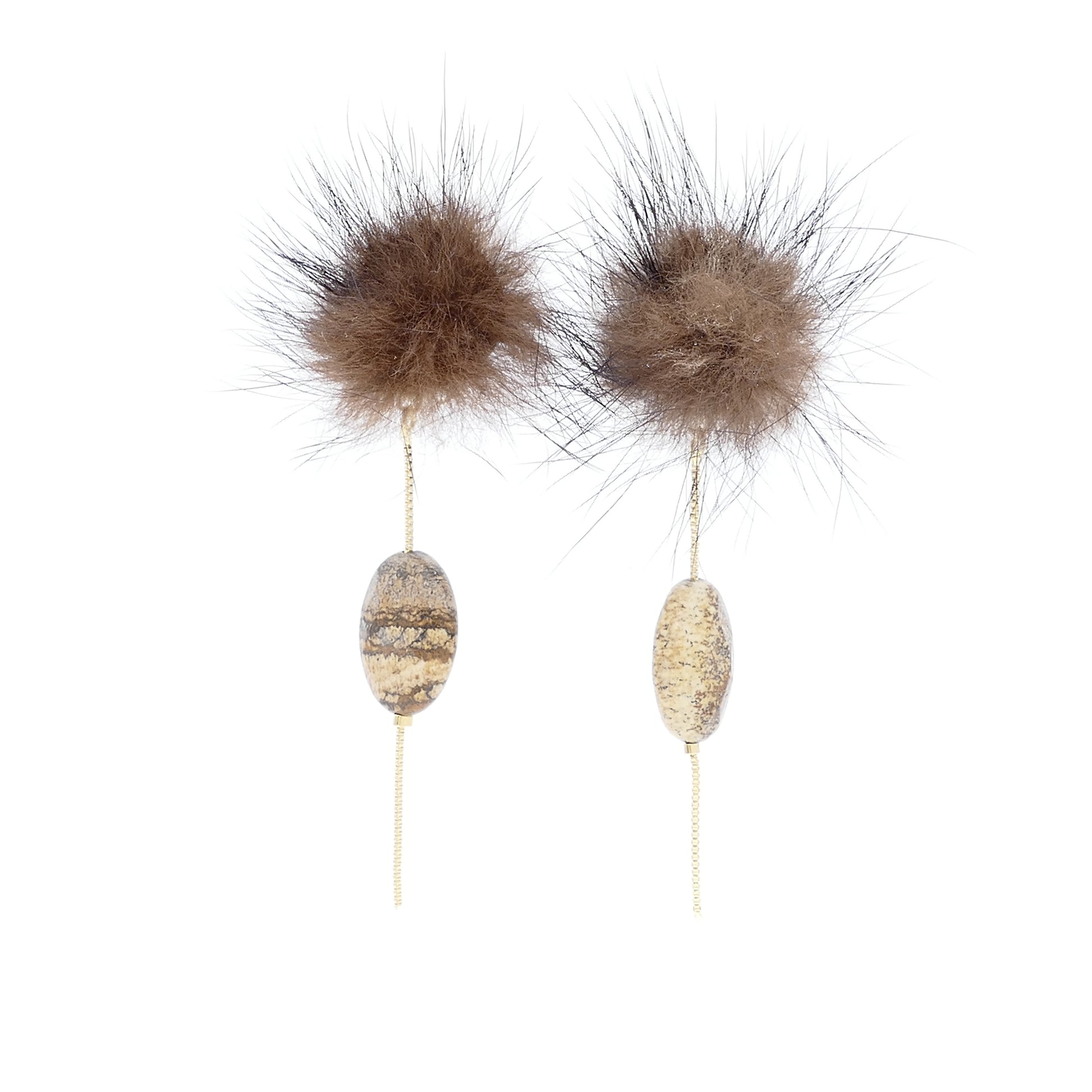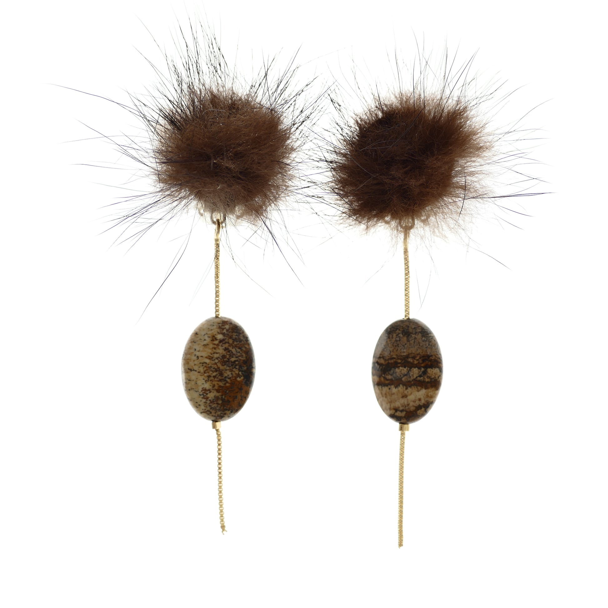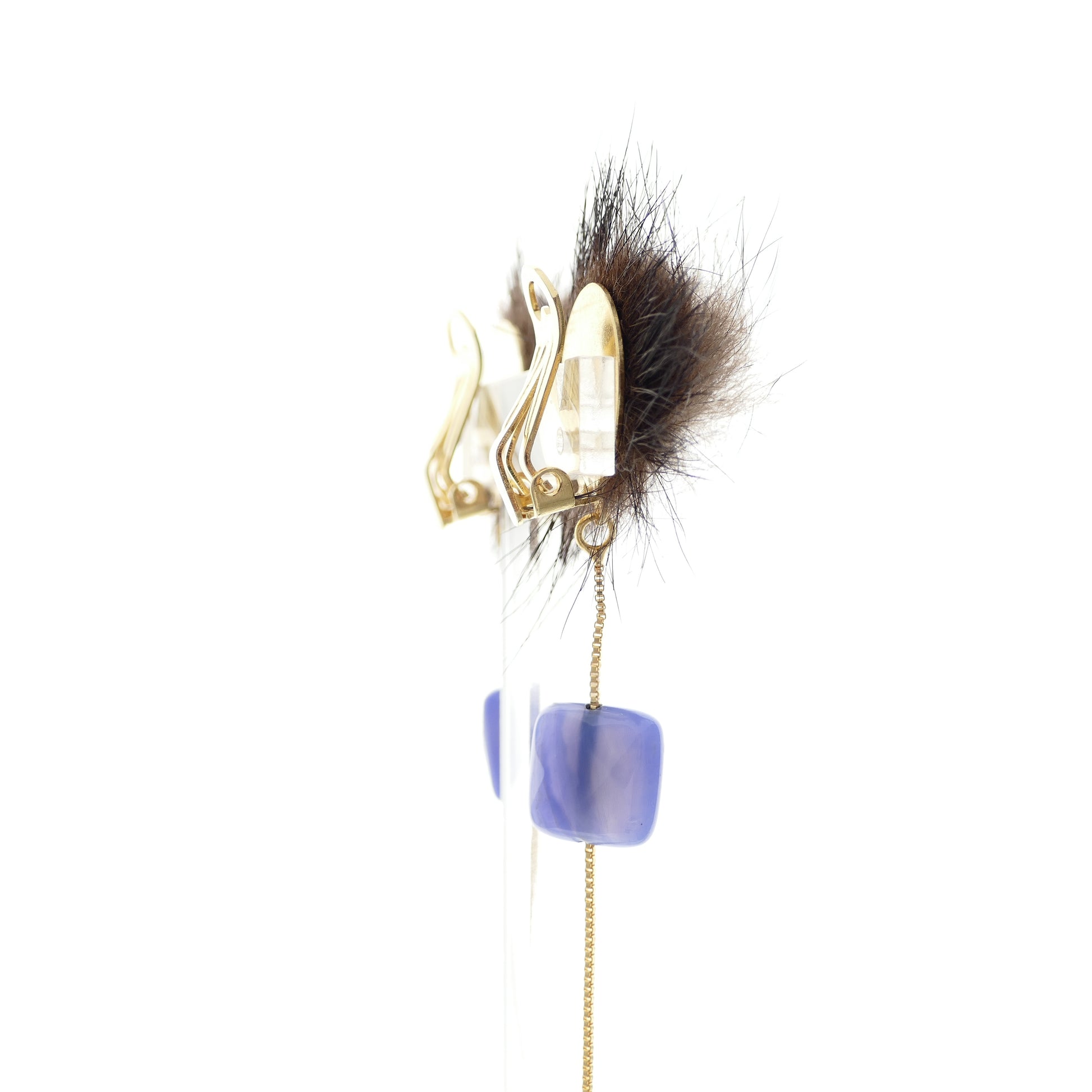 - Ohrringe Ohrclips Messing-Vergoldetem, Stein,Glasperlen Fell-Pelz.