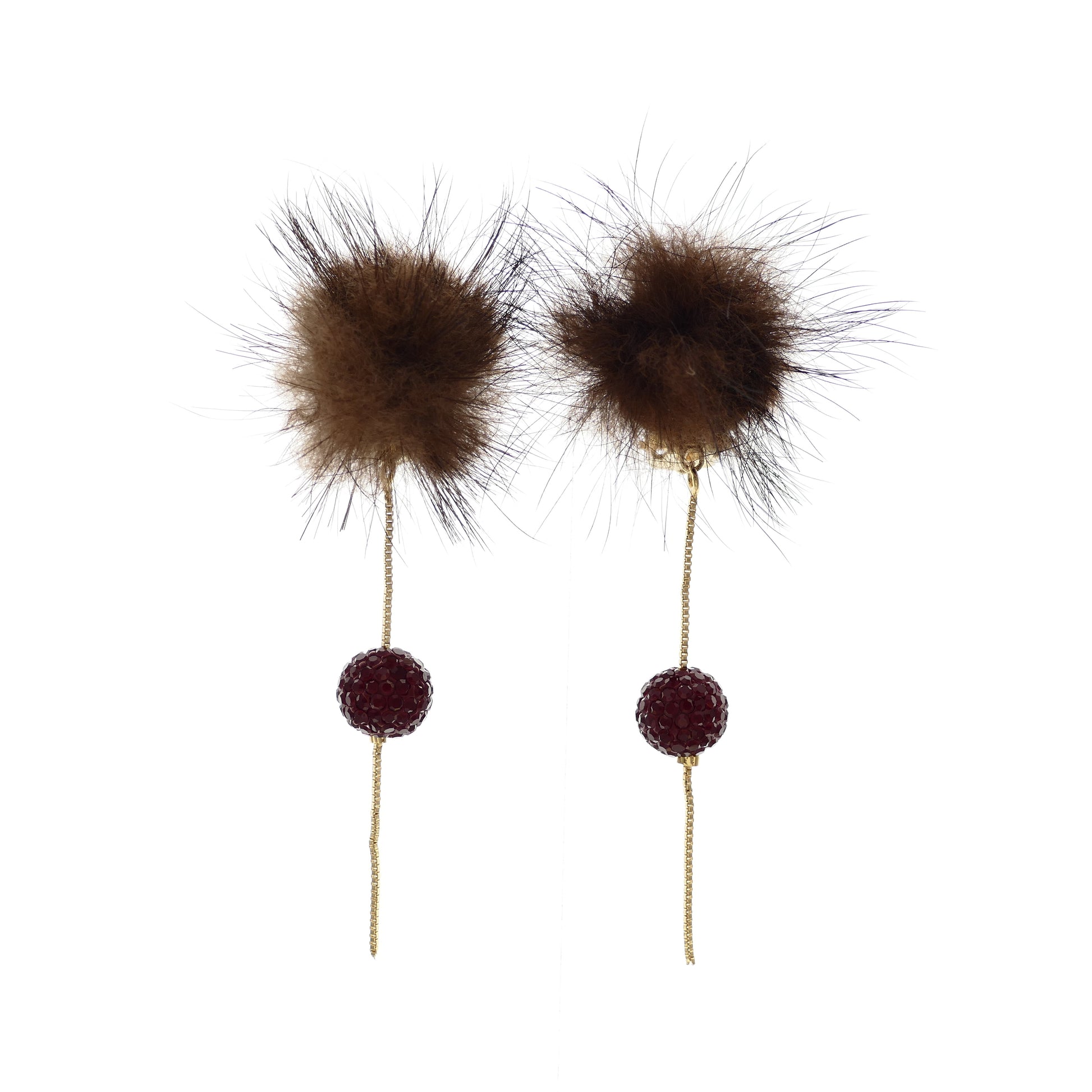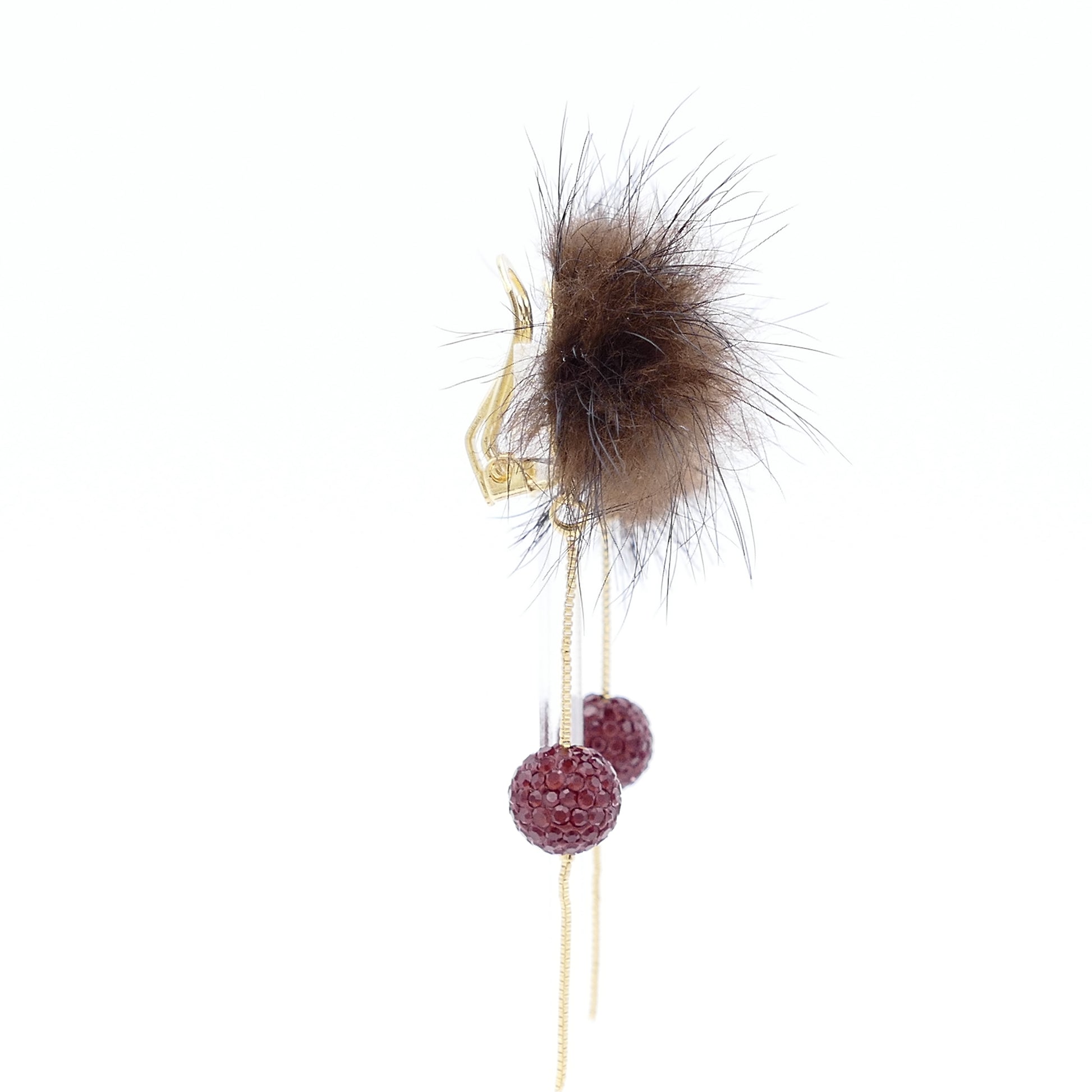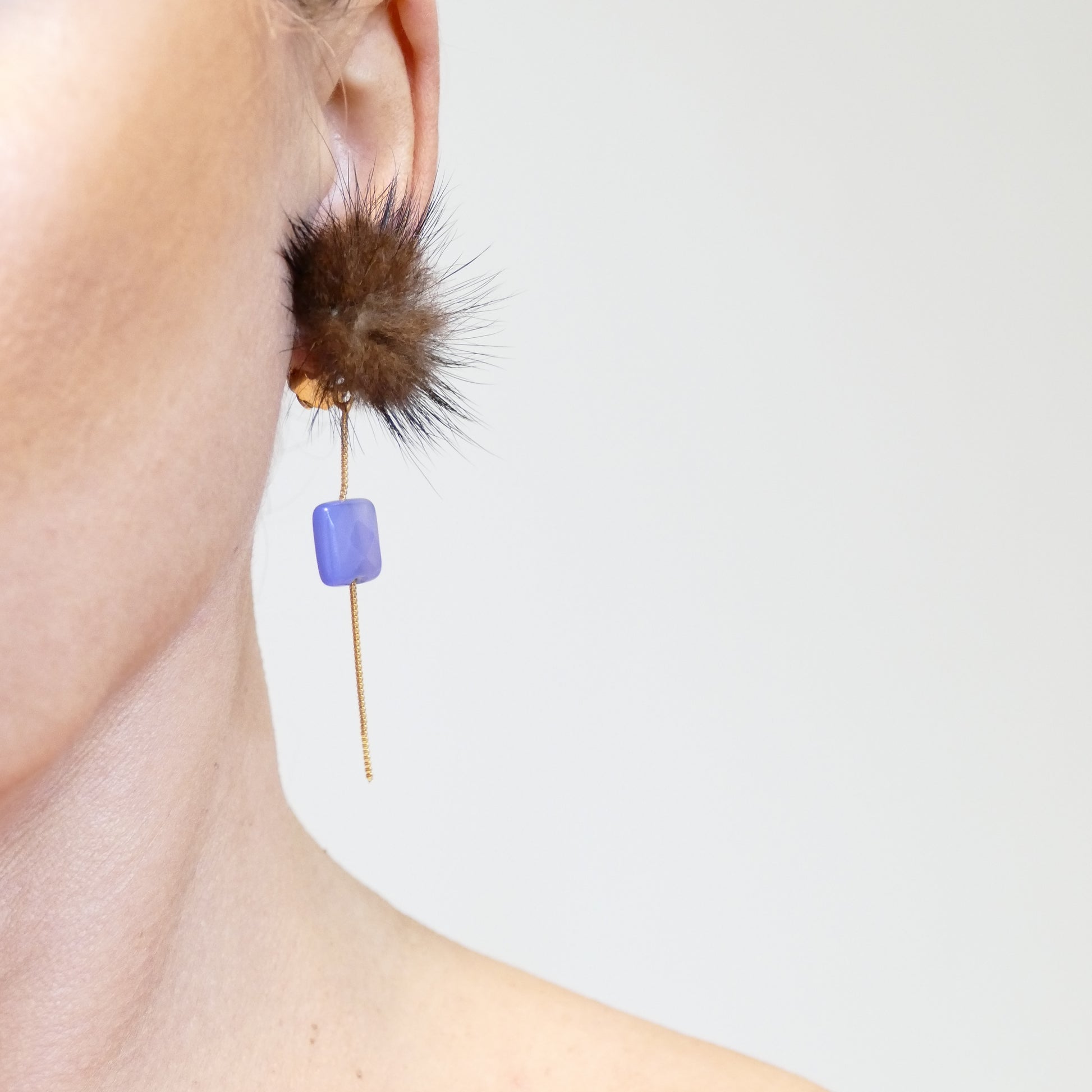 - Ohrringe Ohrclips Messing-Vergoldetem, Stein,Glasperlen Fell-Pelz.