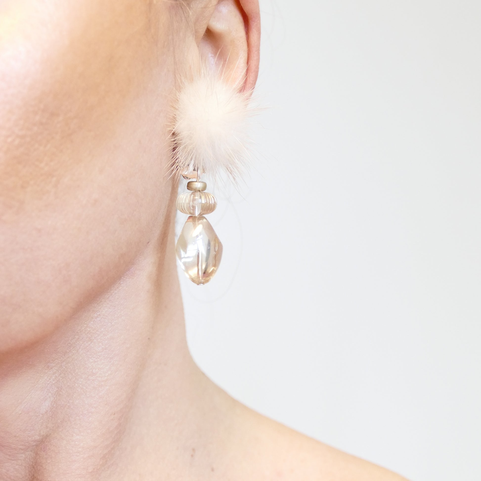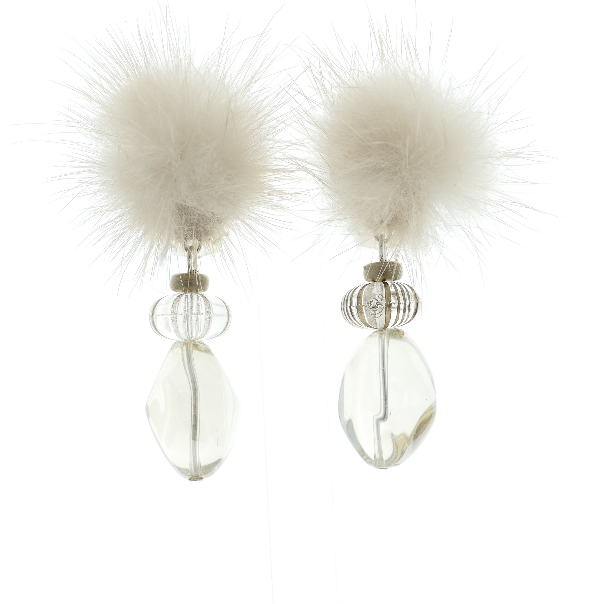 - Ohrringe Ohrclips Versilbert, Kunstartperlen, Fell-Pelz.