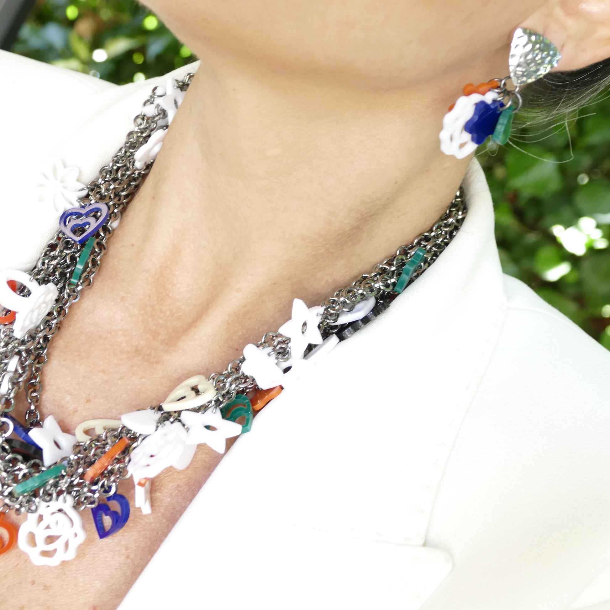 Modeschmuck Statement Necklace Set/ Modern Kette mit Ohrringe Ohrstecker.