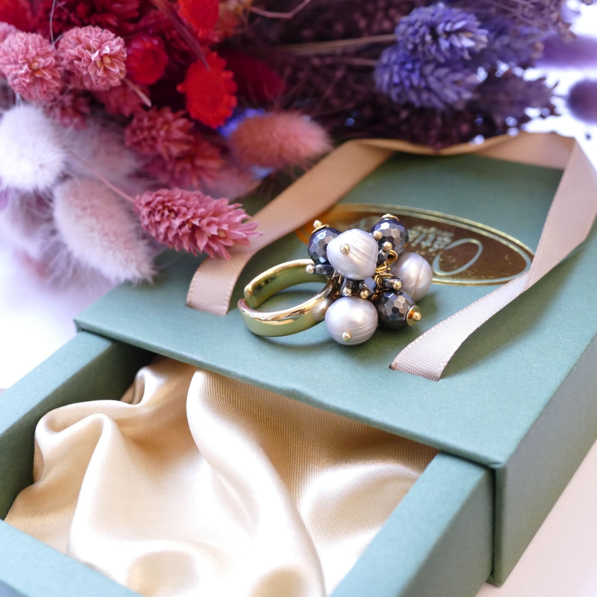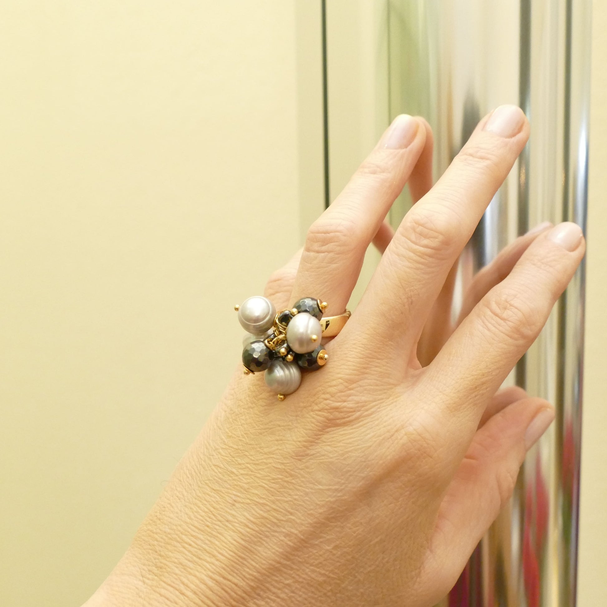 Verleihen Sie Ihrem Look mit unseren Avar Ringen einen Hauch von Luxus. Die Vergoldung in Gold und die natürlichen Hämatit-Natursteine verleihen jedem Outfit eine elegante Note. Die graue Perle fügt einen Hauch von Raffinesse hinzu. Perfekt für einen anspruchsvollen und exklusiven Look.