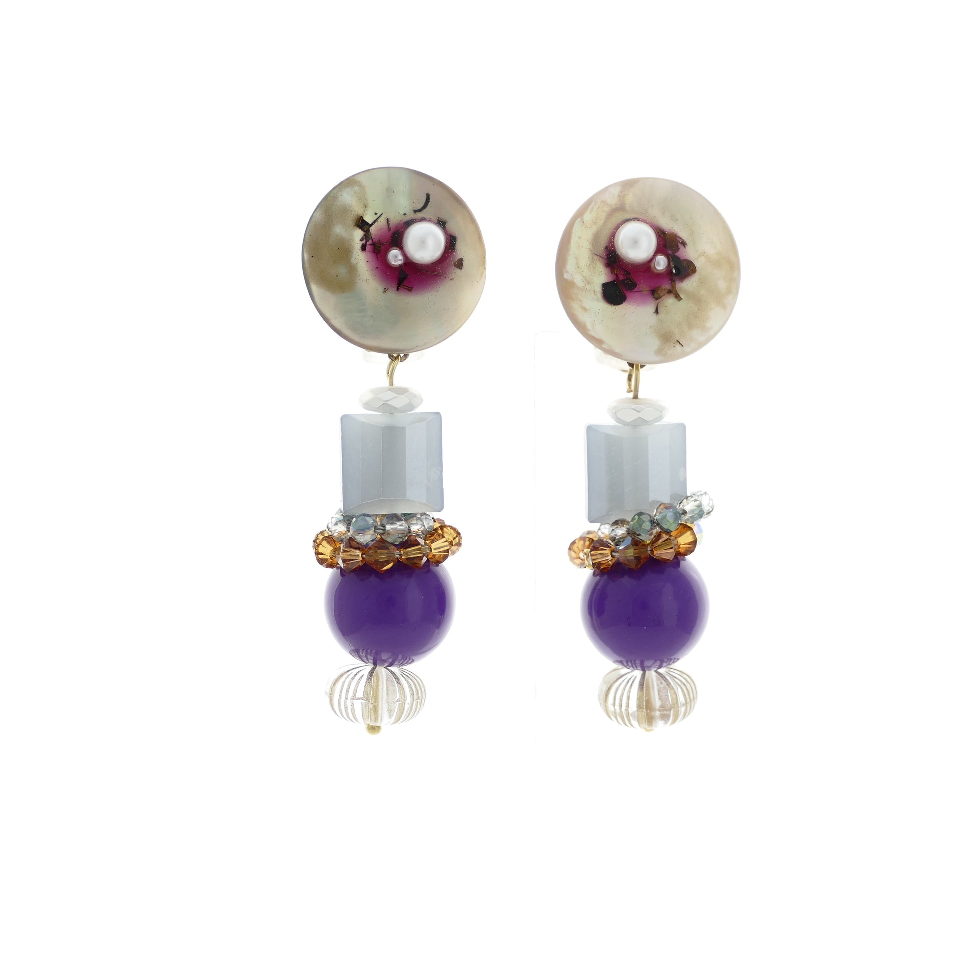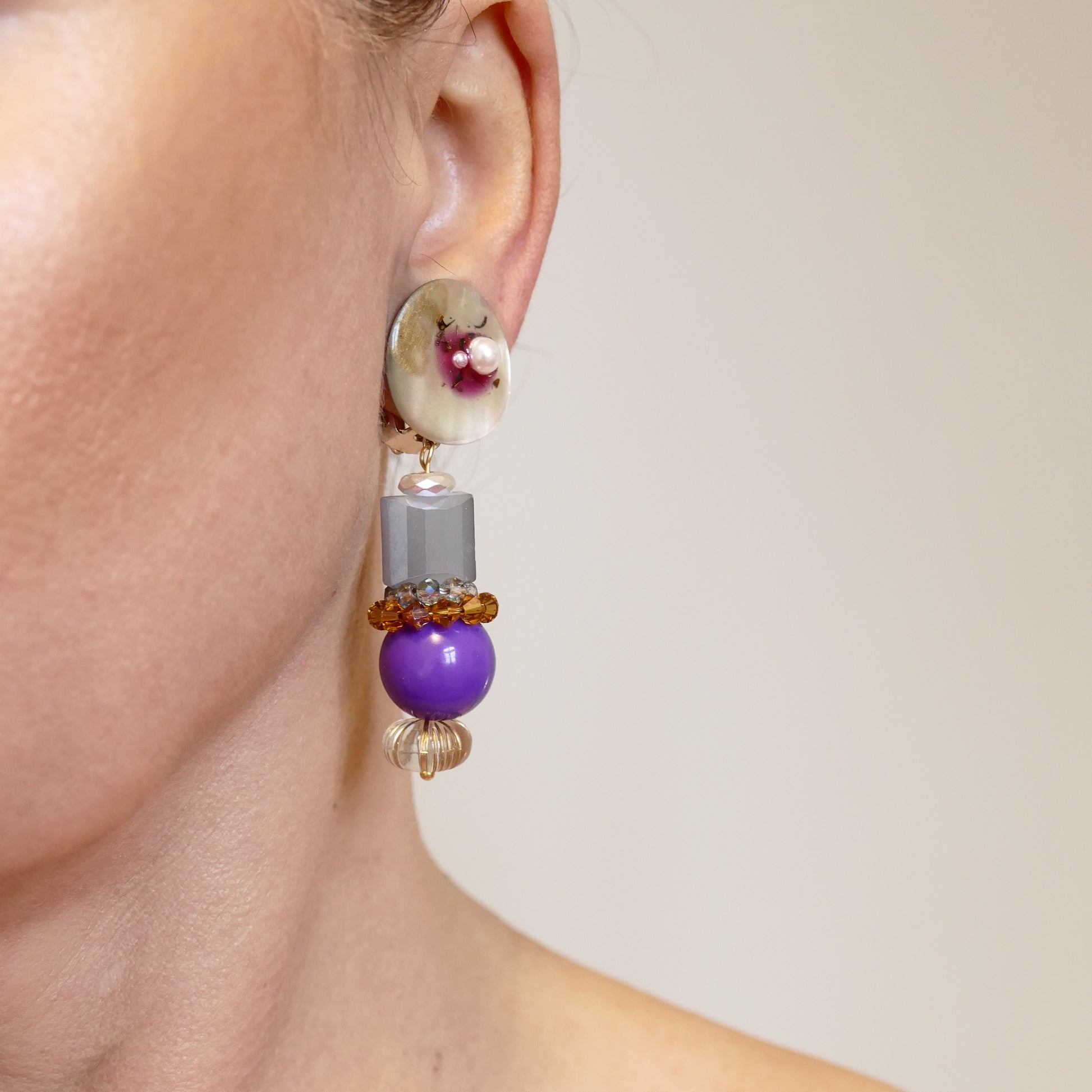 - Ohrringe Ohrclips Versilbert, Perlmutt, Kunstperle, Glassperlen.