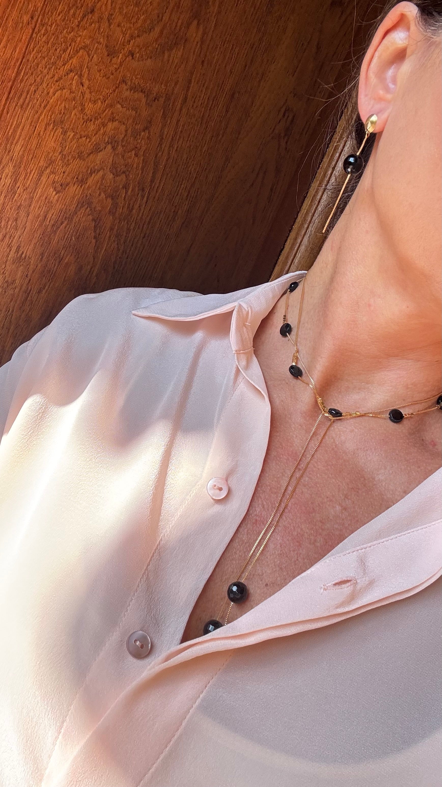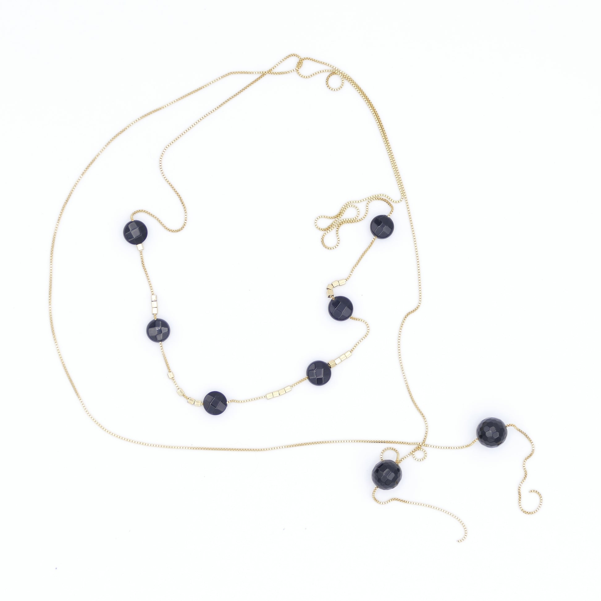 Carol Kette Onyx – ein zeitloses Schmuckstück, das Eleganz und Raffinesse ausstrahlt. Diese wunderschöne Halskette besticht durch ihre vergoldete Ausführung in Gold und den facettierten Onyx-Stein, der mit seinem tiefen Schwarz einen faszinierenden Kontrast schafft. Der kunstvoll geschliffene Stein fängt das Licht auf subtile Weise ein und verleiht jedem Outfit eine Prise Luxus. Perfekt für besondere Anlässe oder als alltägliches Statement-Piece – diese Kette ist ein Muss für jeden, der klassischen Stil mit modernem Design verbindet.