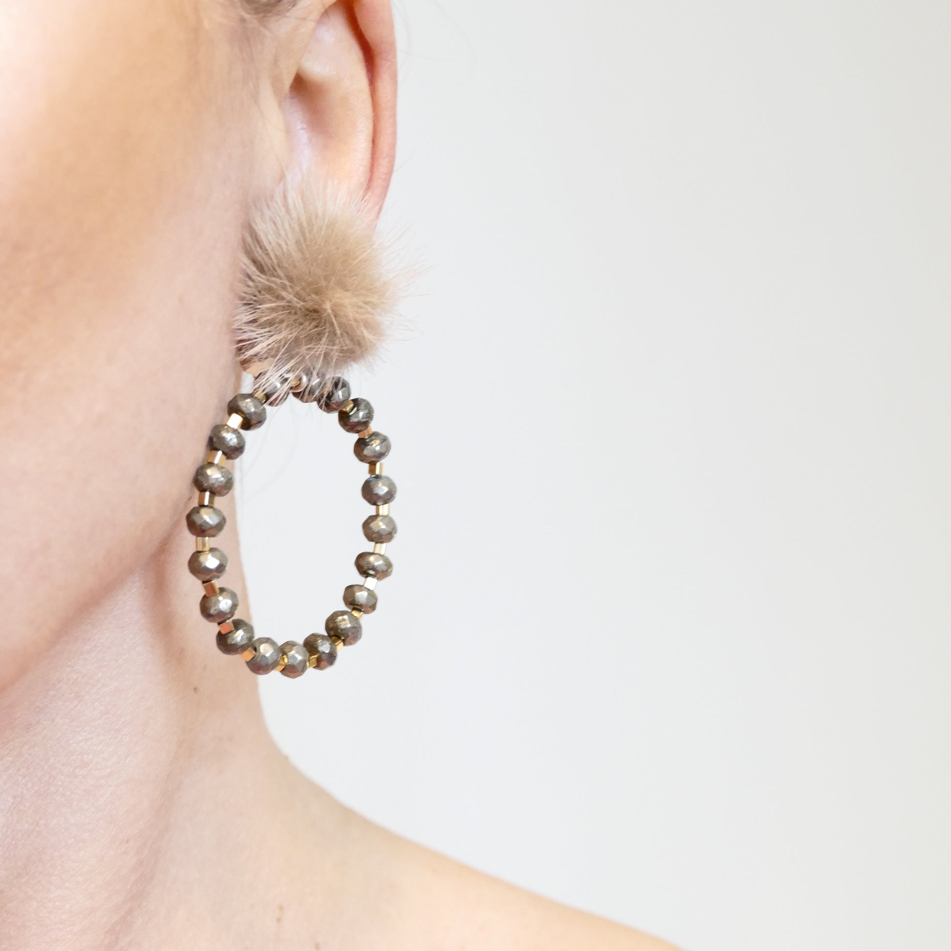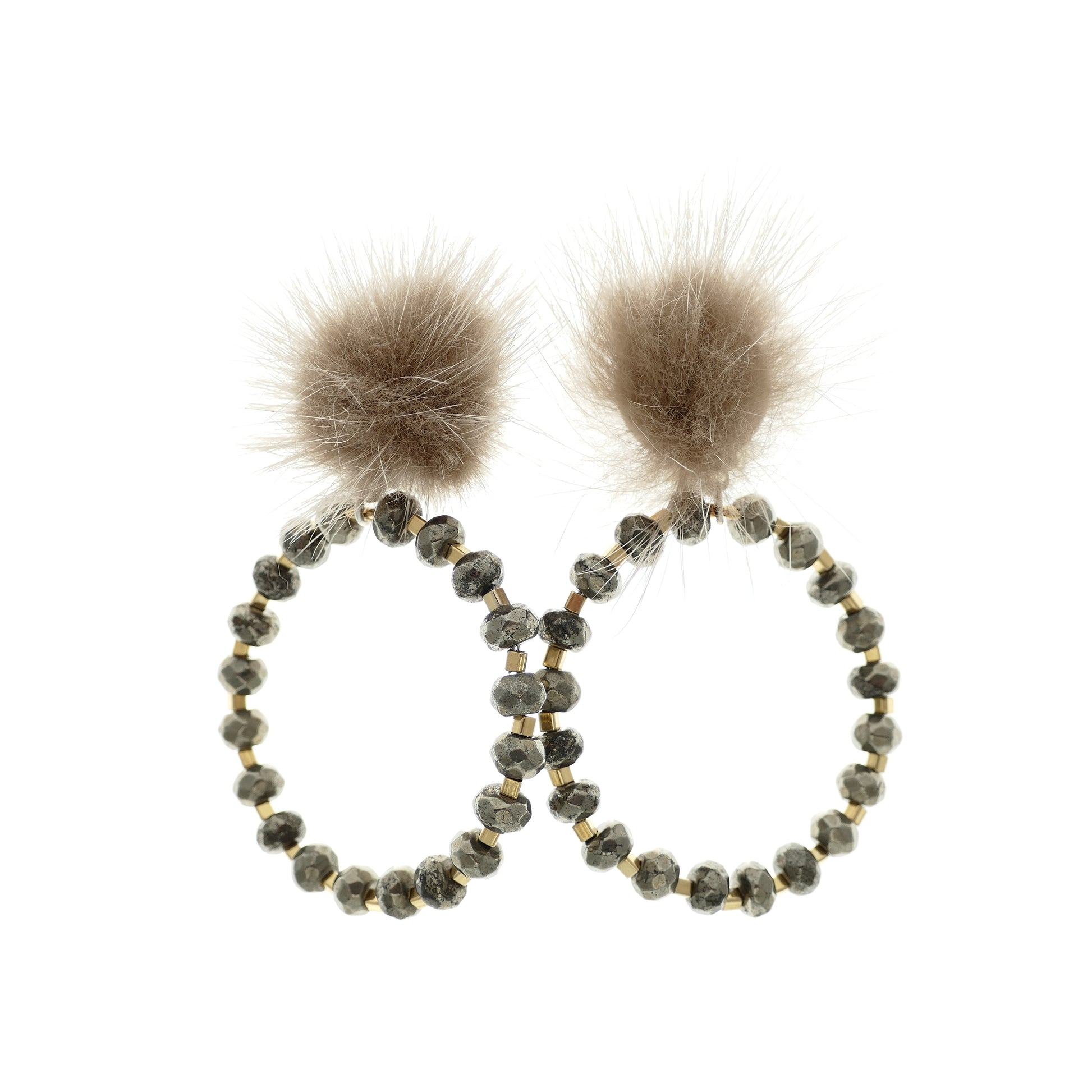 - Ohrringe Ohrclips Versilbert, Stein, Fell-Pelz.