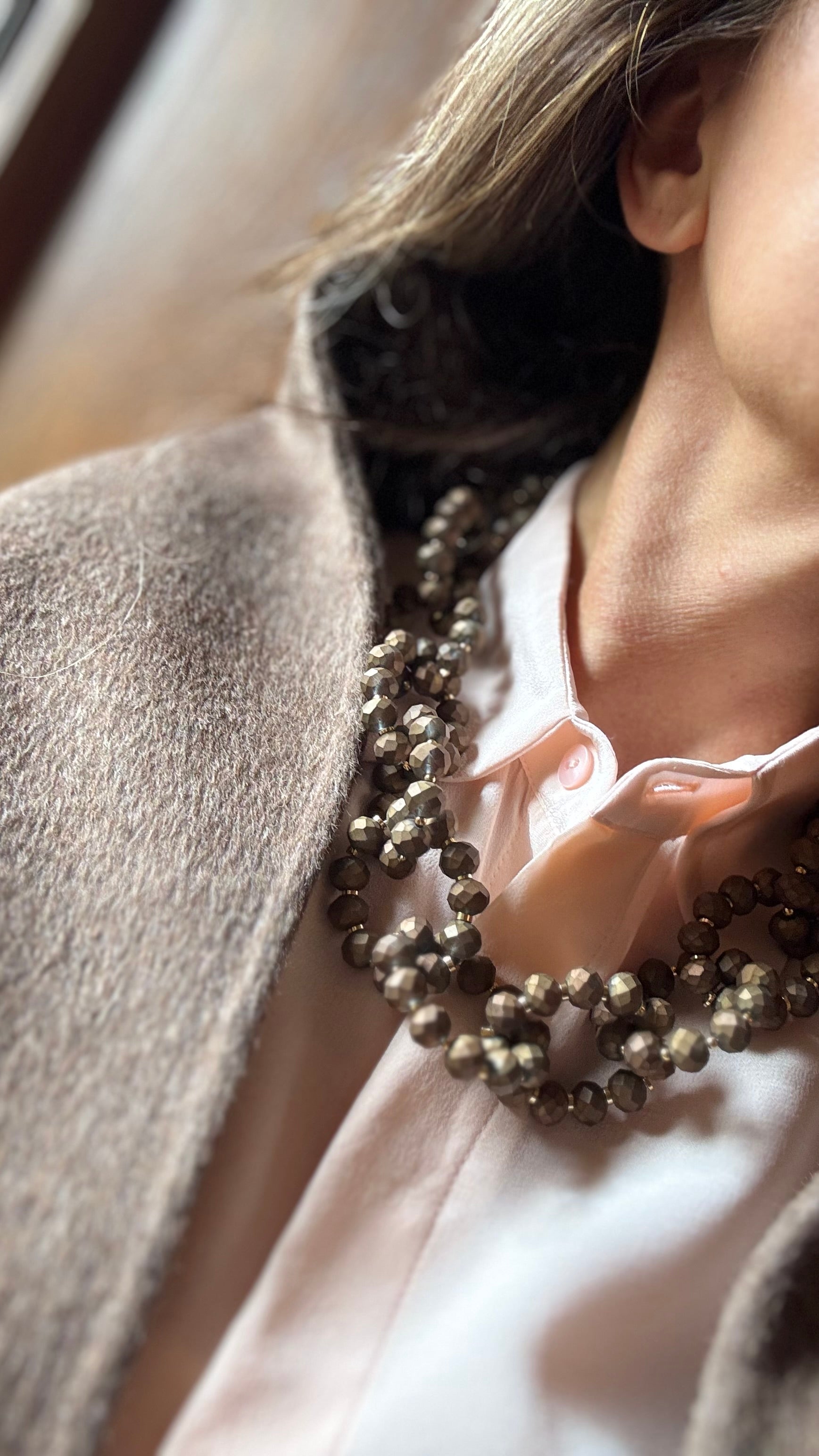 Die Creola Kette in Bronze verbindet edles Gold mit facettierten Perlen, die dezent schimmern und dem Schmuckstück eine elegante Tiefe verleihen. Ihre warme Bronze-Farbgebung harmoniert perfekt mit dem glänzenden Gold und sorgt für einen zeitlosen, luxuriösen Look. Dieses raffinierte Accessoire veredelt jedes Outfit und unterstreicht anspruchsvolle Eleganz mit subtiler Noblesse.