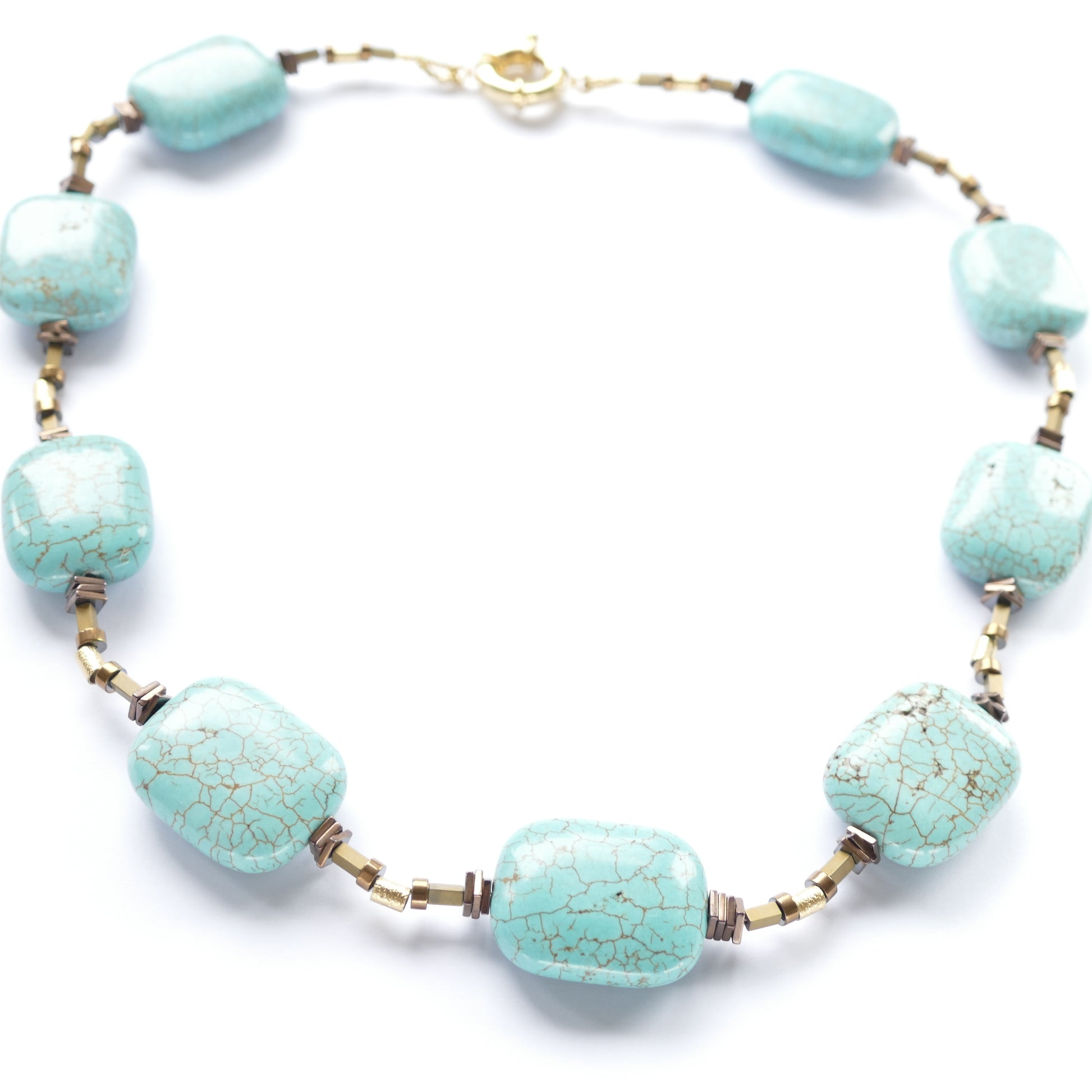 Diese elegante Dana Kette kombiniert den lebendigen Türkis mit dem tiefgründigen Hämatitstein und verleiht jedem Outfit eine raffinierte Note. Das harmonische Zusammenspiel der Farben sorgt für einen stilvollen Akzent, der sowohl im Alltag als auch zu besonderen Anlässen überzeugt. Ein Schmuckstück, das zeitlose Schönheit und moderne Eleganz perfekt verbindet.