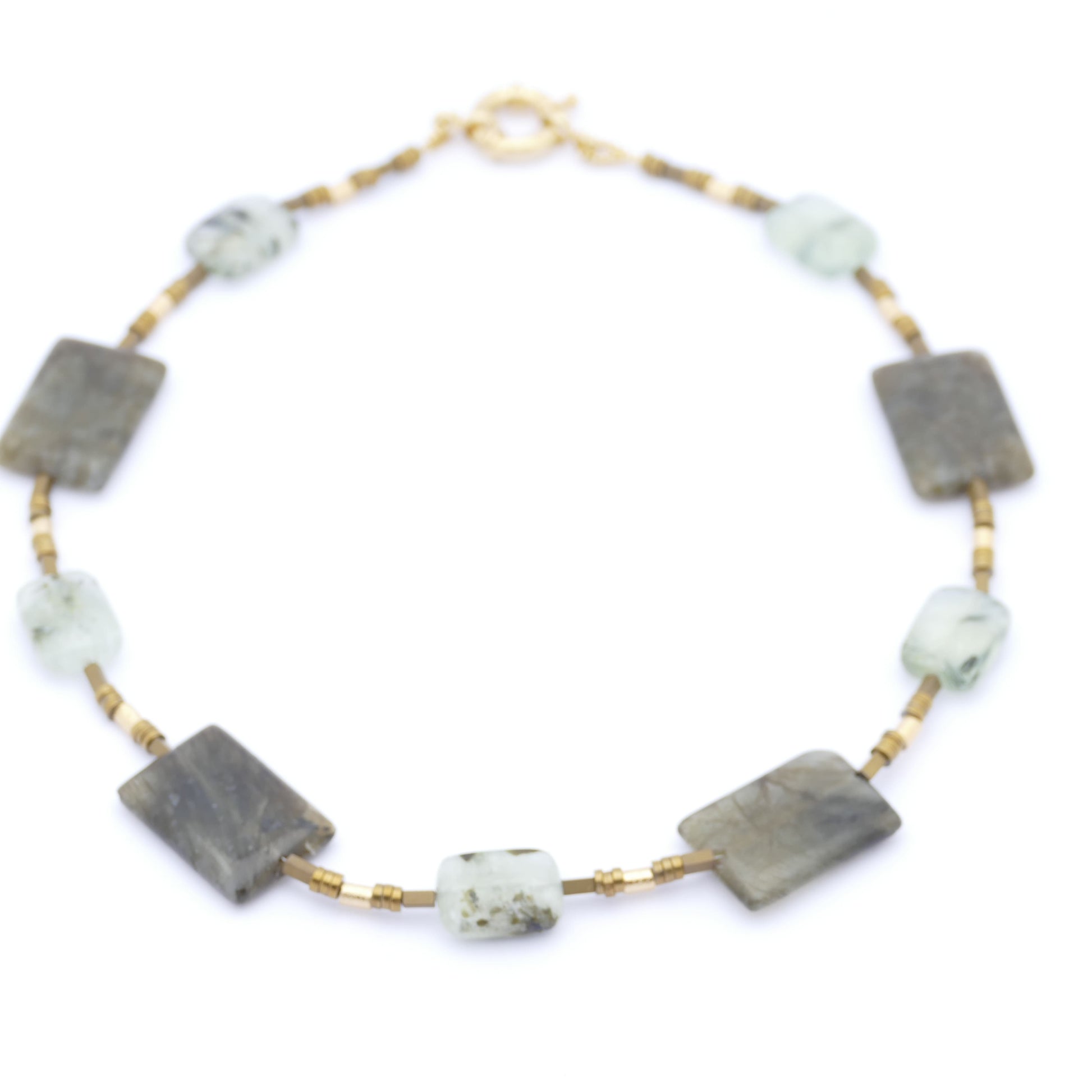 Die Dandara Labradorit Kette mit Hämatit Stein vereint eleganten Glanz und natürliche Kraft. Der schimmernde Labradorit verleiht jedem Outfit eine mystische Note, während der Hämatit Stein für Ausgleich und Schutz sorgt. Dieses Schmuckstück besticht durch seine feine Verarbeitung und zeitlose Ästhetik – perfekt für anspruchsvolle Trägerinnen, die Stil mit Bedeutung verbinden möchten.
