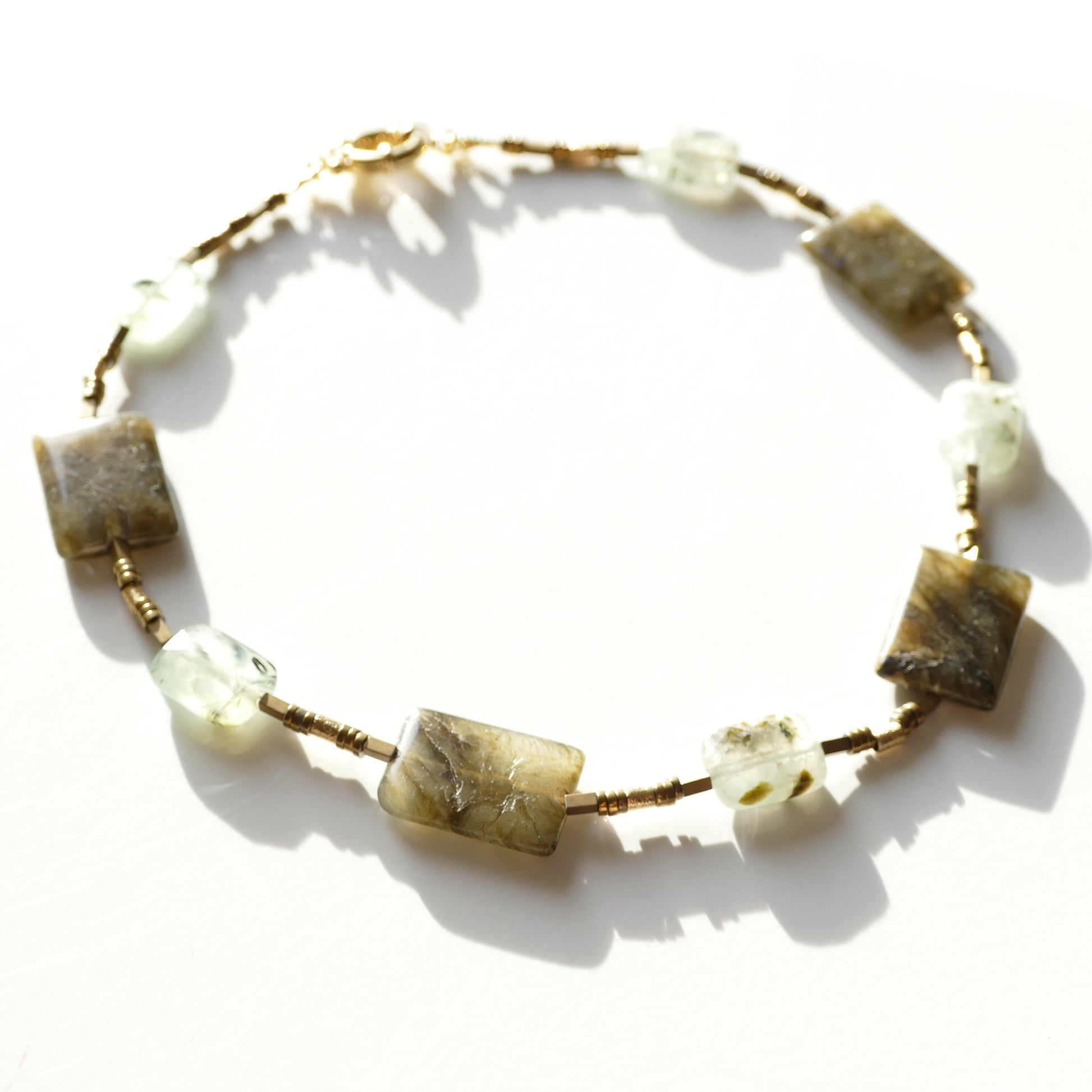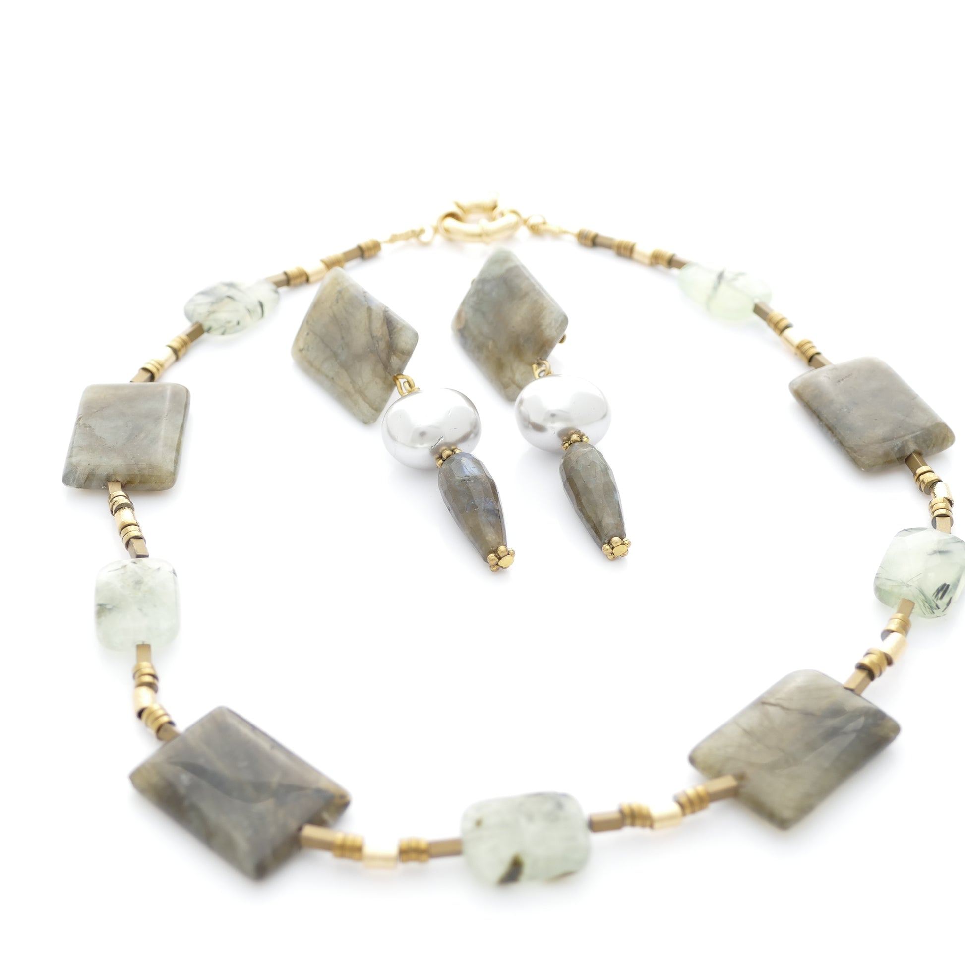 - Labradorit Stein , Hämatit und Vergoldetem Element.