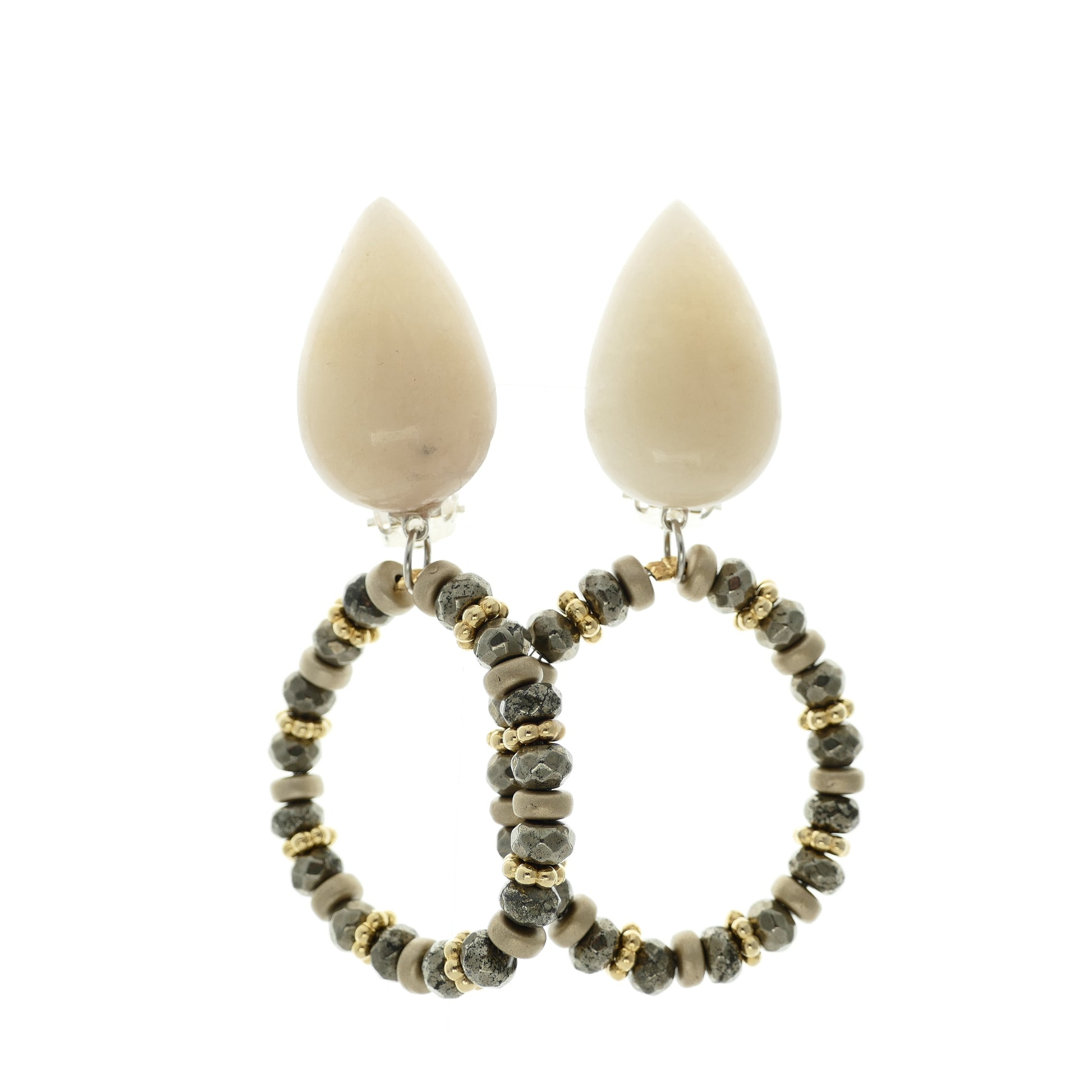 - Ohrringe Ohrclips Versilbert, Stein, Glassperlen.