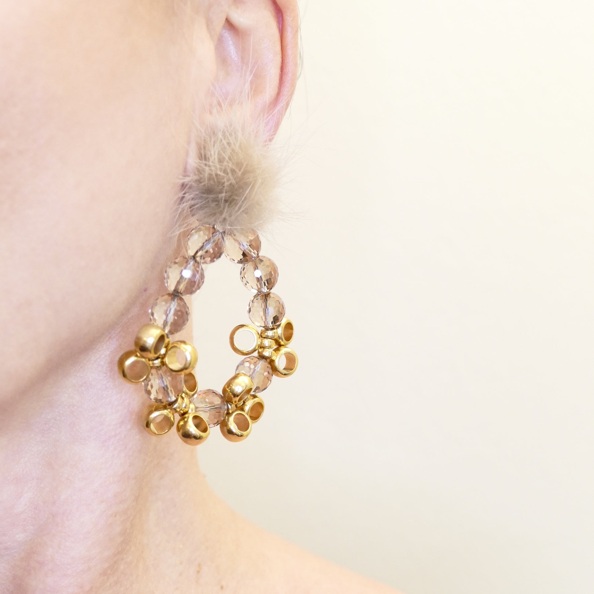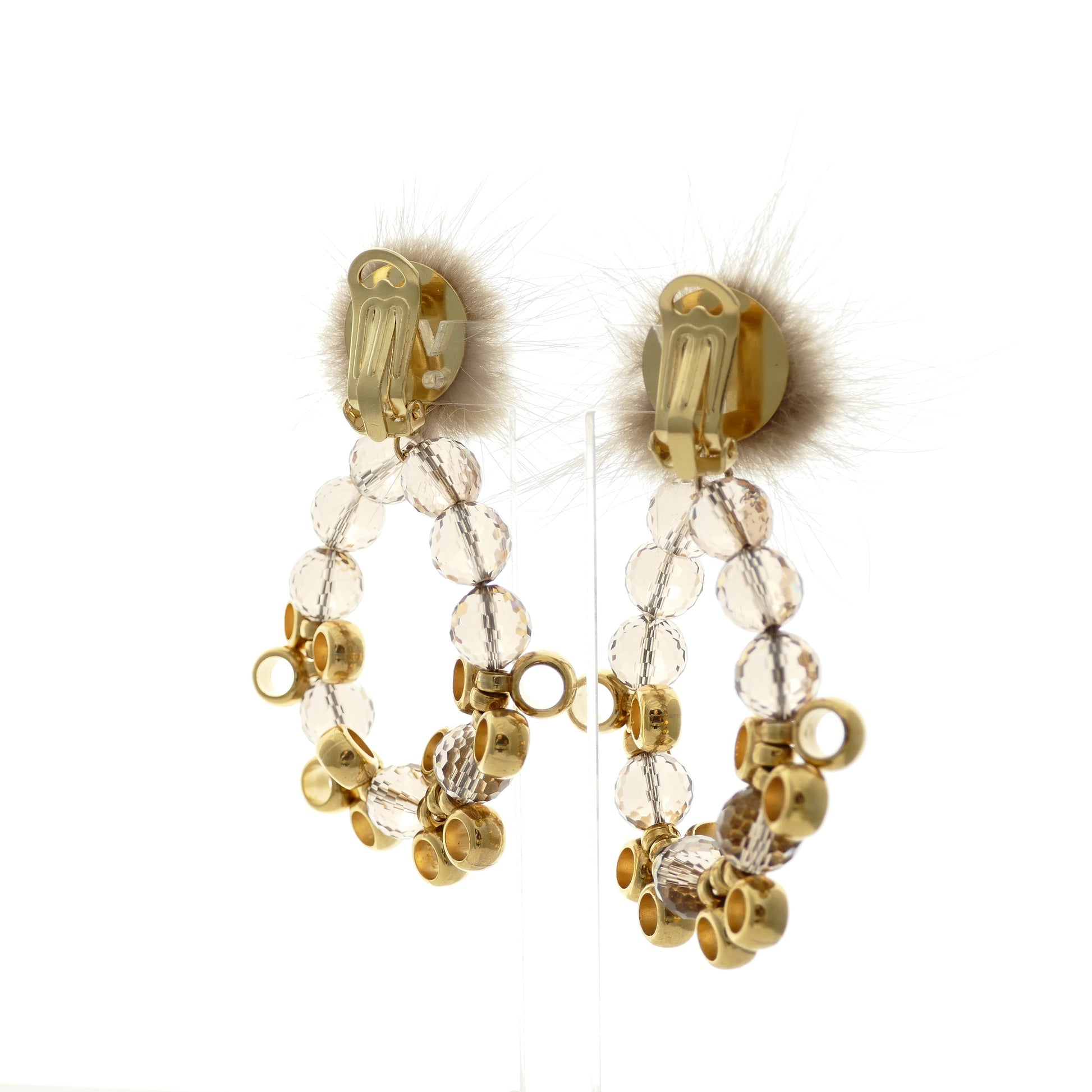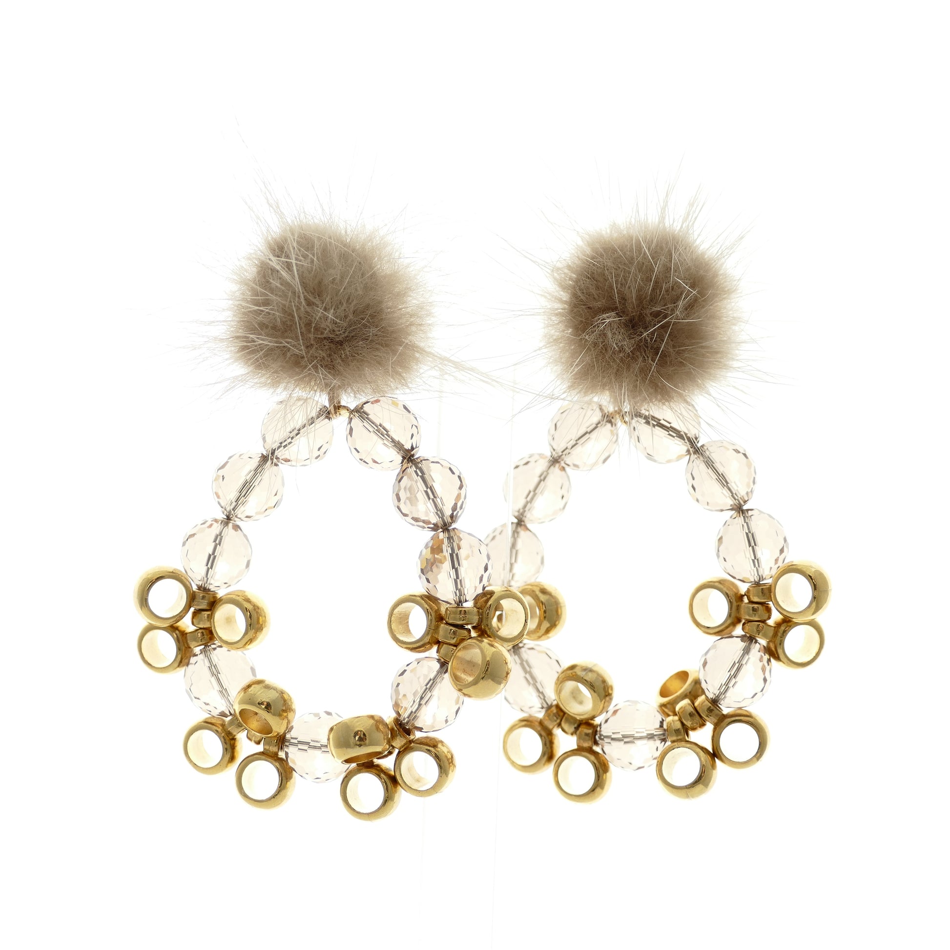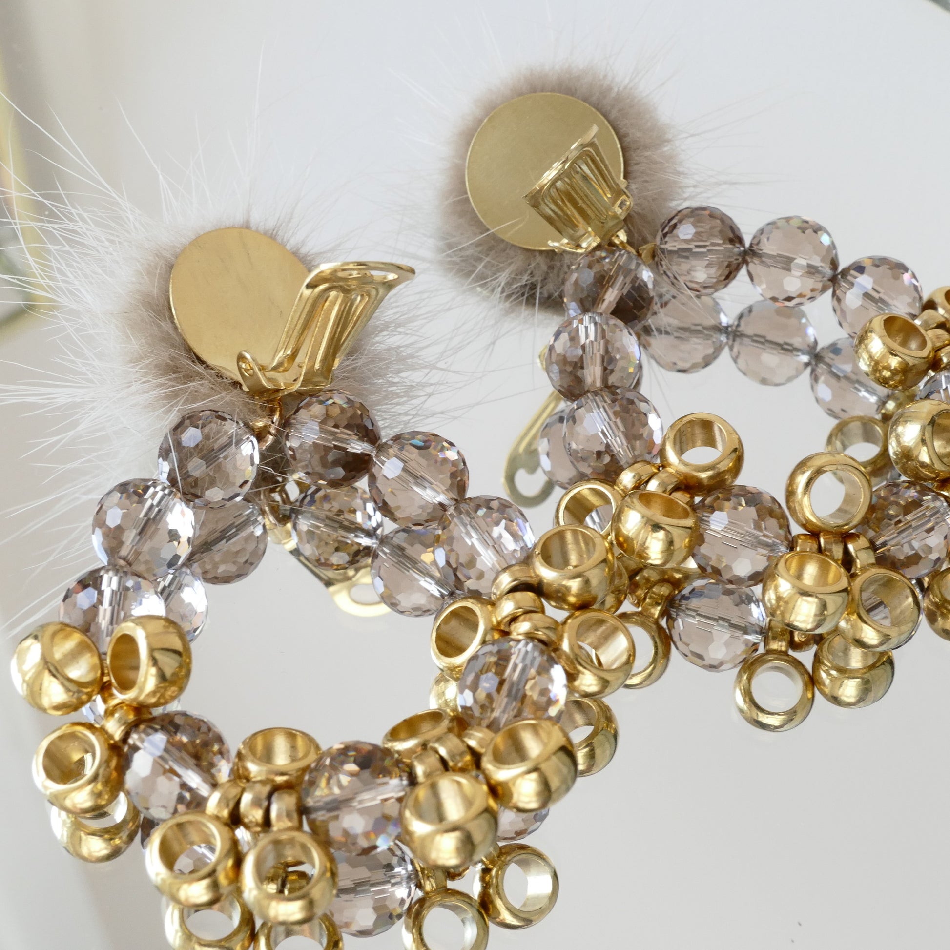 - Ohrringe Ohrclips Komfort-Gold-Vergoldet ,Kristall, Fell-Pelz.