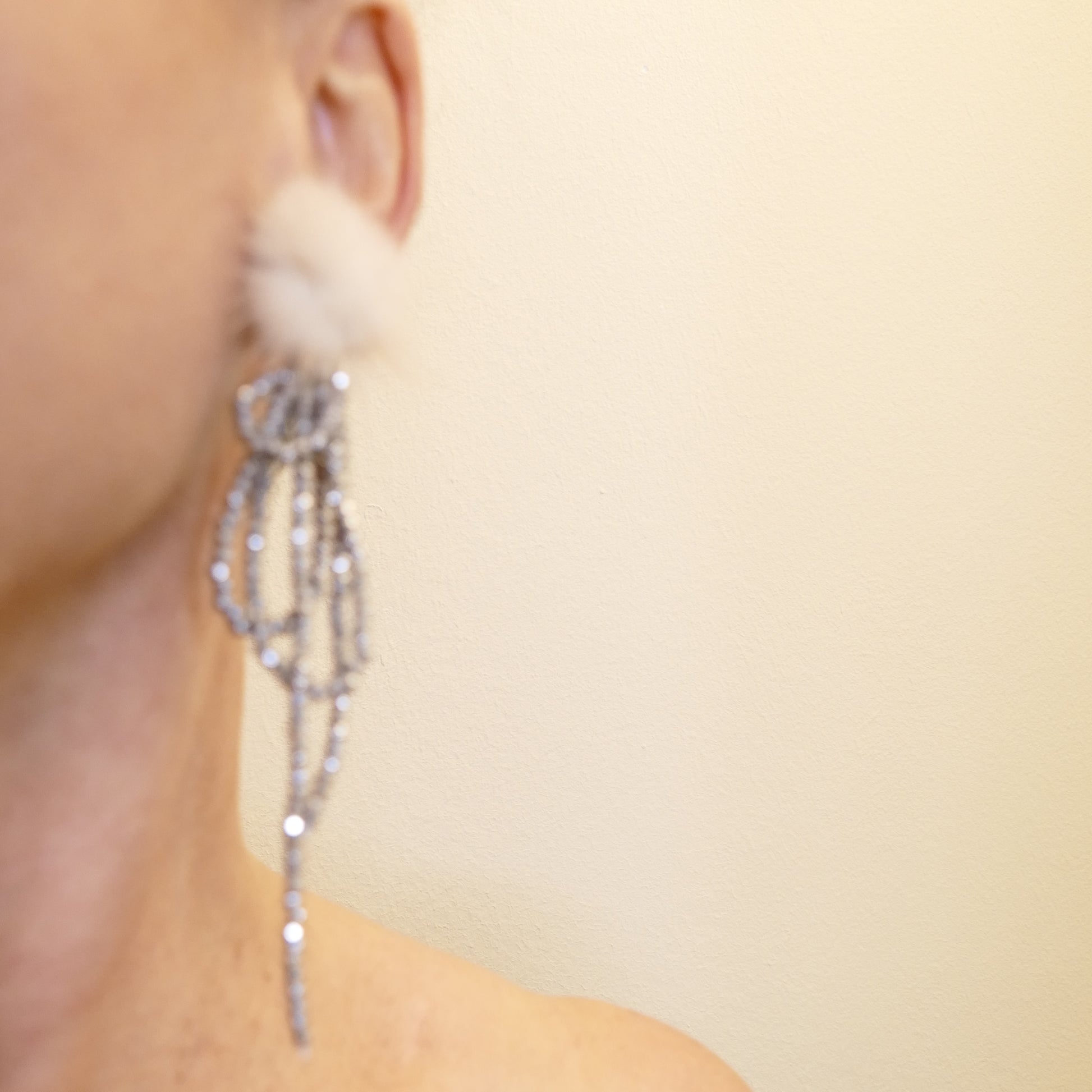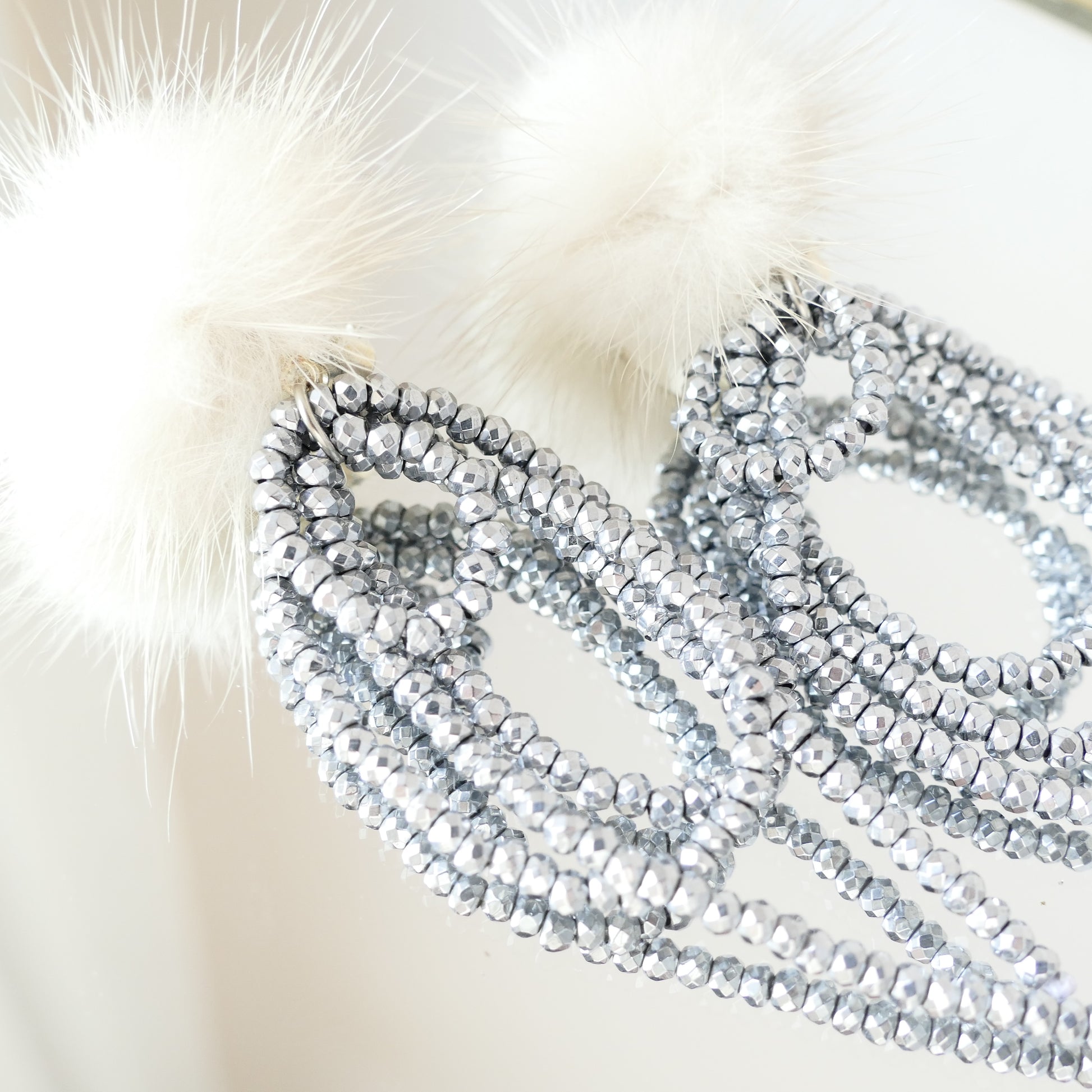 Elegante Ohrclips aus glänzendem Hämatit mit weichen Fransen und kuscheligem hellbeige Fellbesatz. Die komfortablen Clips sitzen sicher ohne zu drücken und verleihen jedem Look eine raffinierte, moderne Note. Perfekt für alle, die Schmuck mit Textur und Charakter lieben – zeitlos grau mit einem Hauch von Luxus.