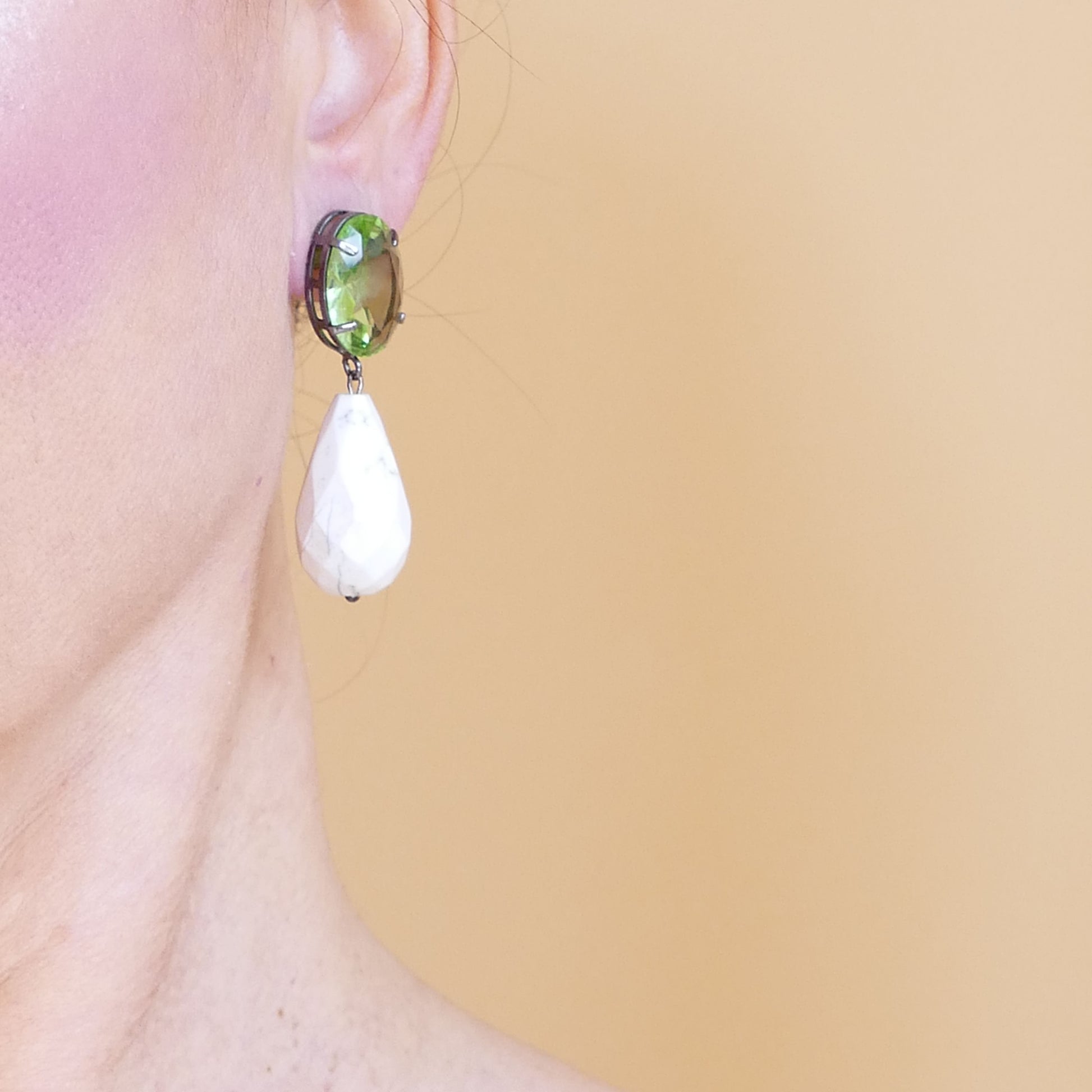 - Ohrringe Ohrstecker mit Kristall in Grüne Farbe Oval Facettiert