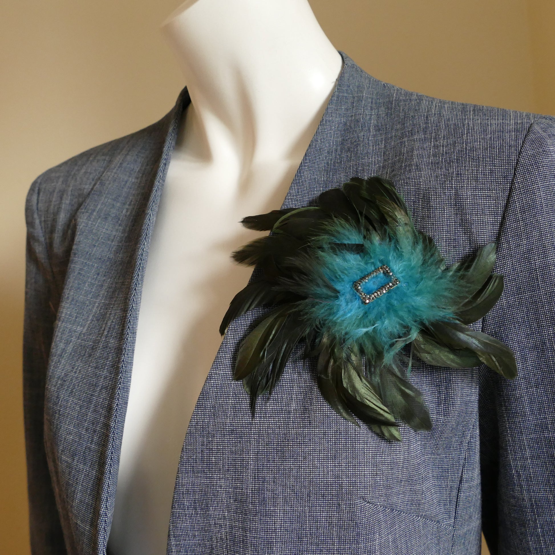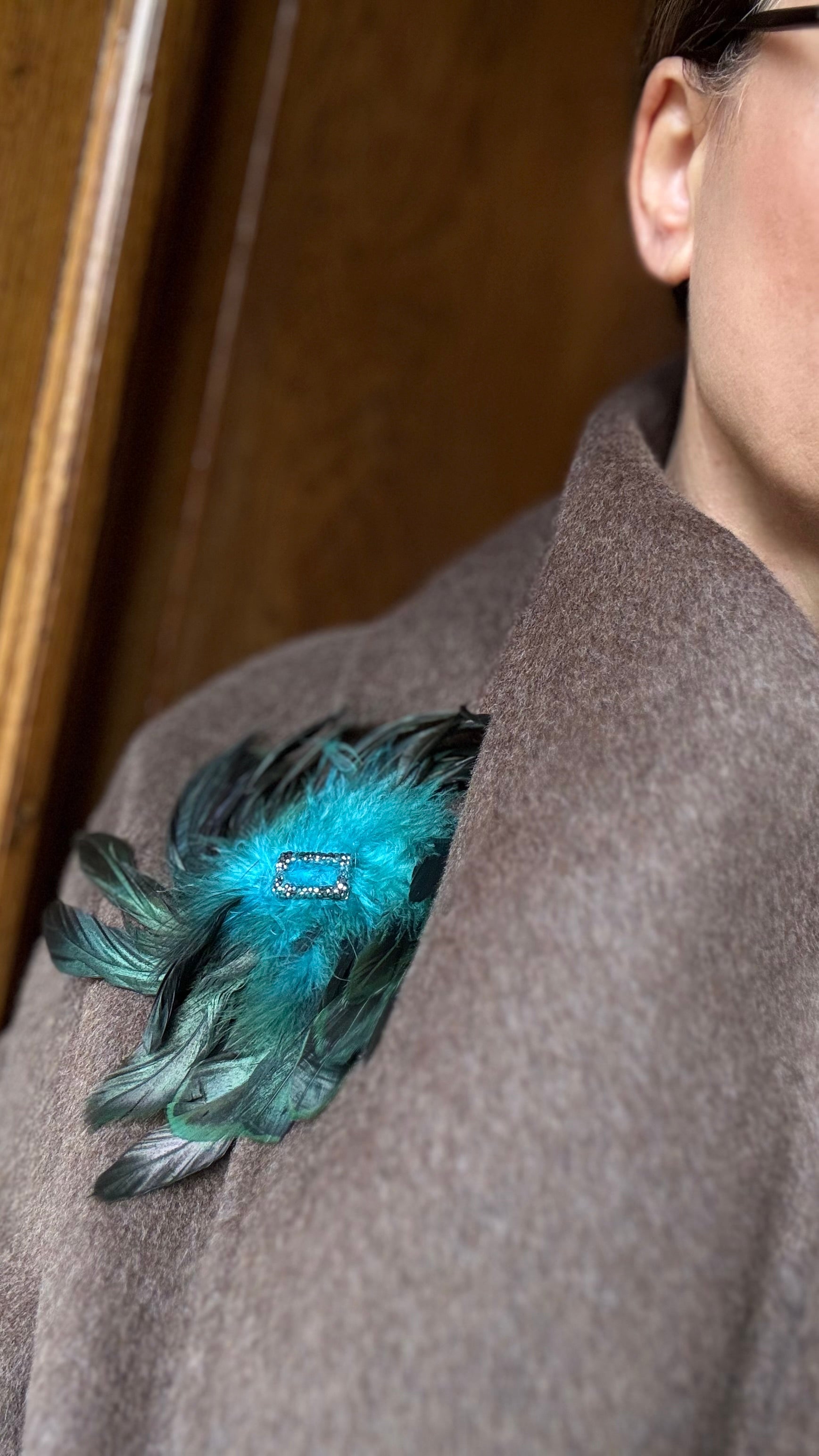 Die Floriano Brosche aus schimmernden Federn in Blau und Schwarz verleiht deinem Outfit einen federleichten Kick. Mit ihrem verspielten Design setzt sie farbenfrohe Akzente und bringt Schwung in jeden Look – perfekt, um deine Kreativität zu zeigen und bewundernde Blicke zu sammeln!