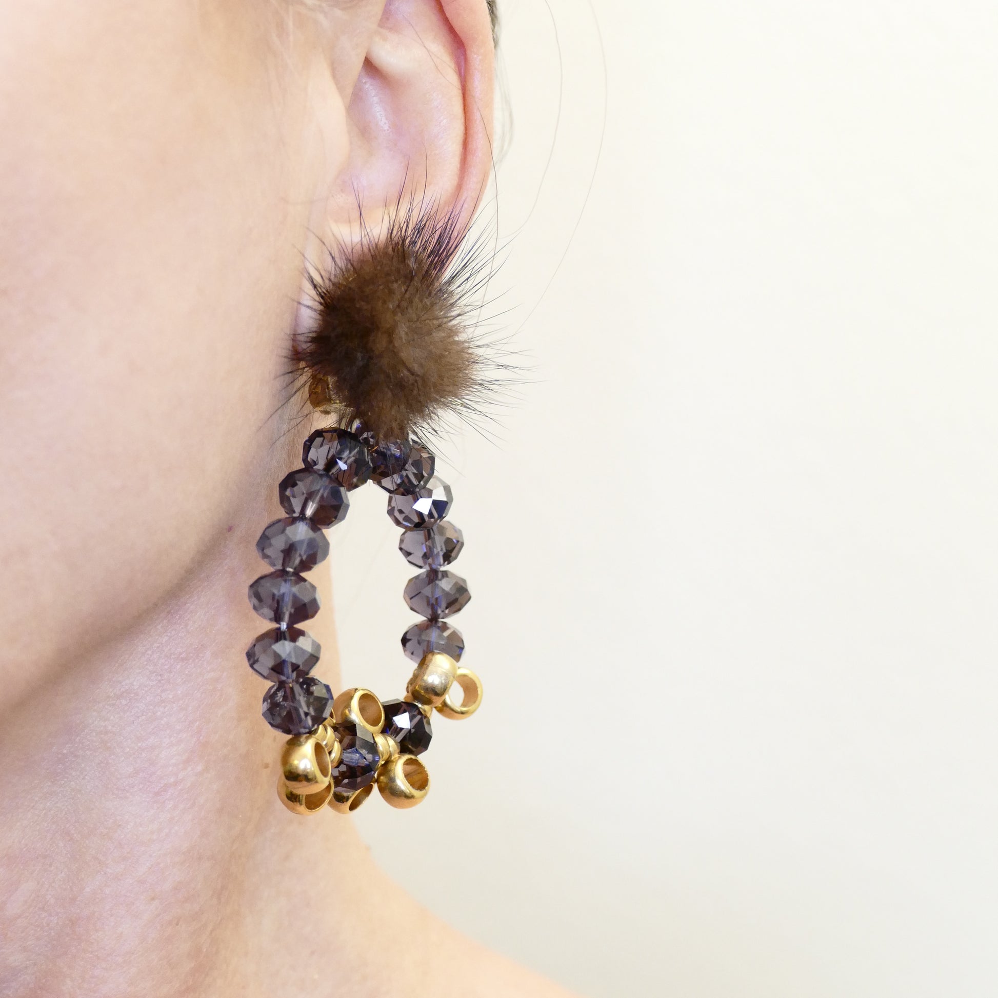 - Ohrringe Ohrclips Vergoldete, Kristall, Fell-Pelz.