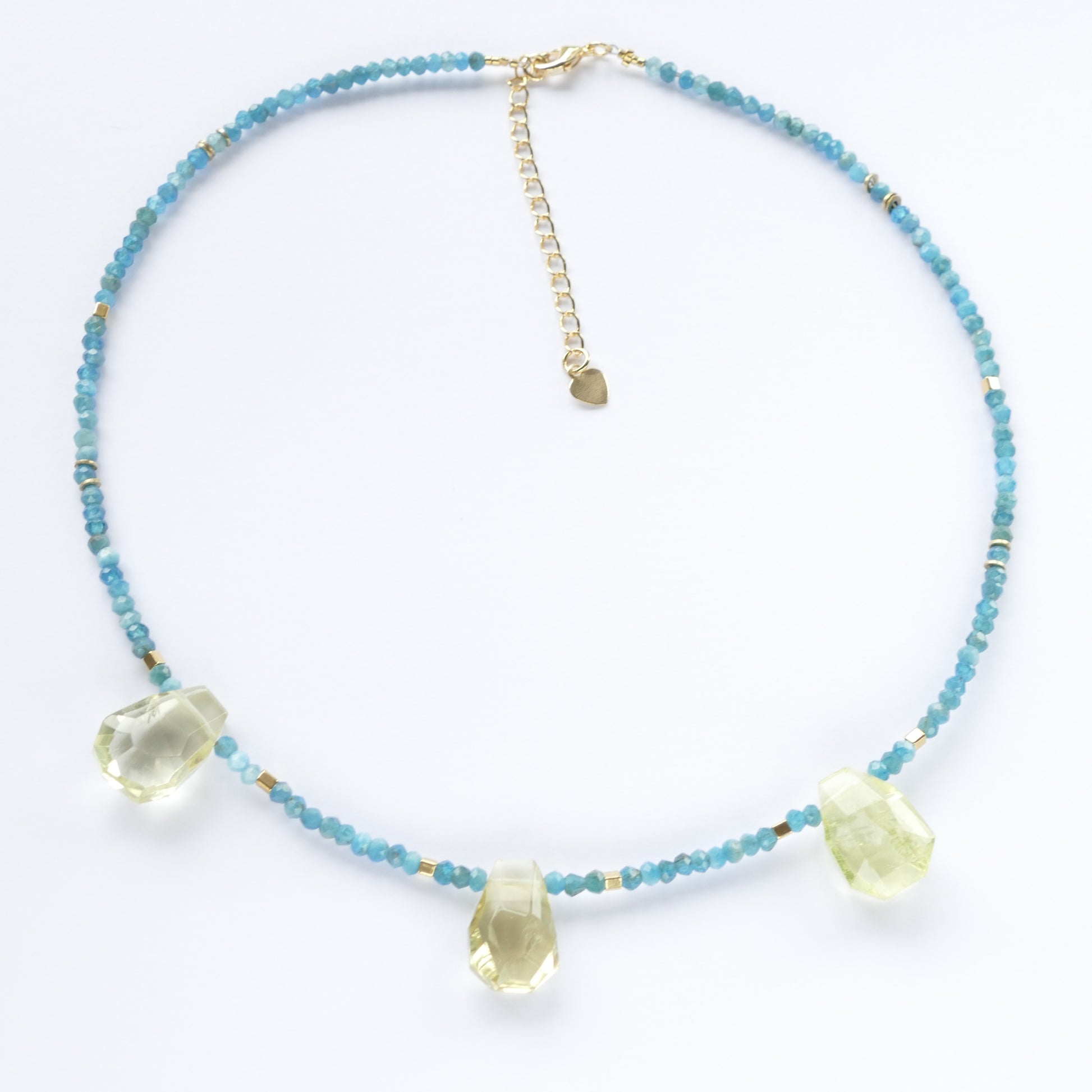 - Edelsteine Kette, Zitronen Citrine, Türkis, Vergoldetem Element.