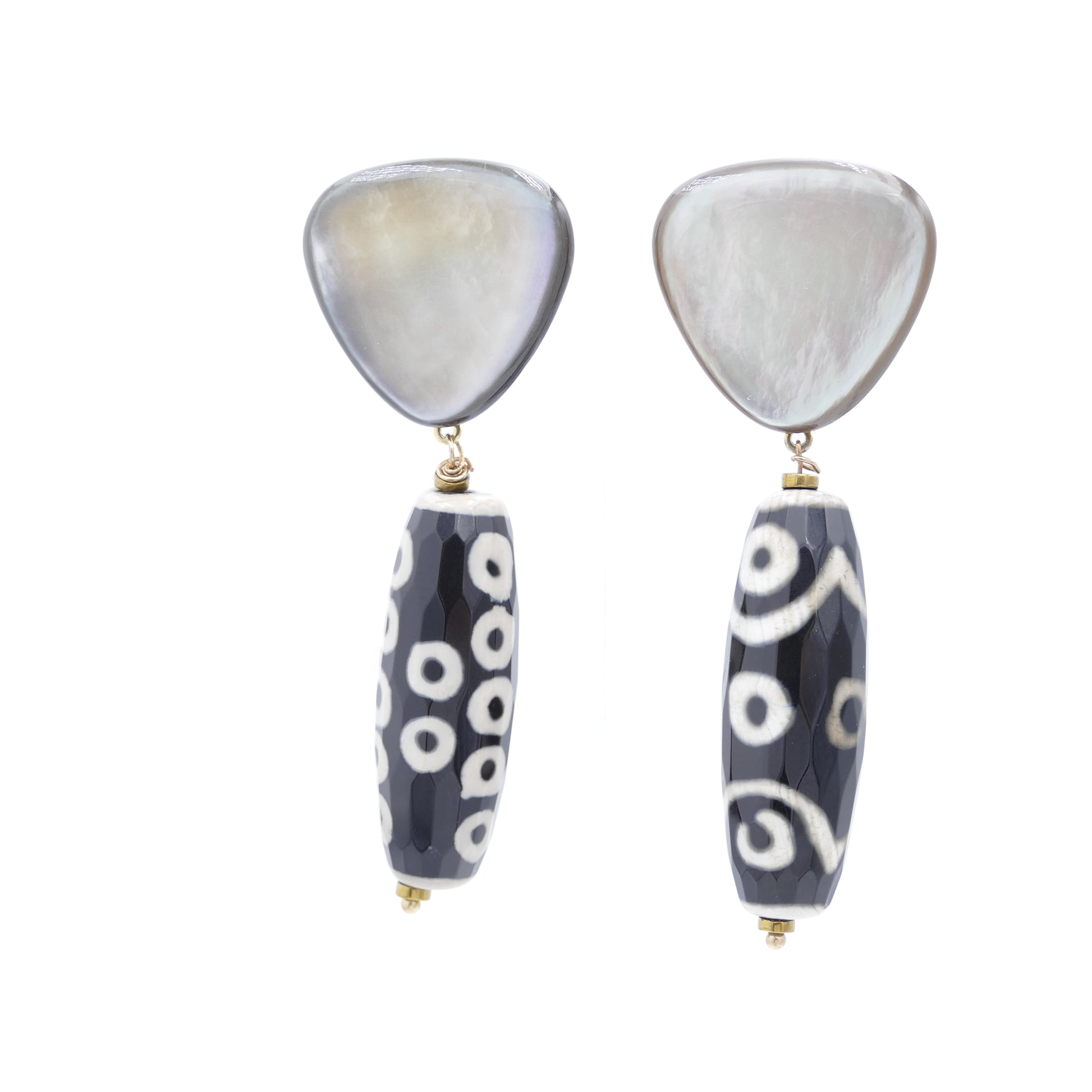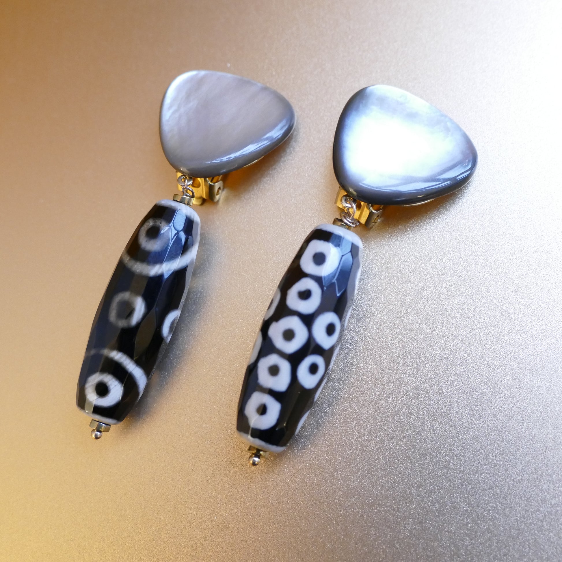 Giane Ohrclips Schwarz & Beige Mit Perlmutt Perle