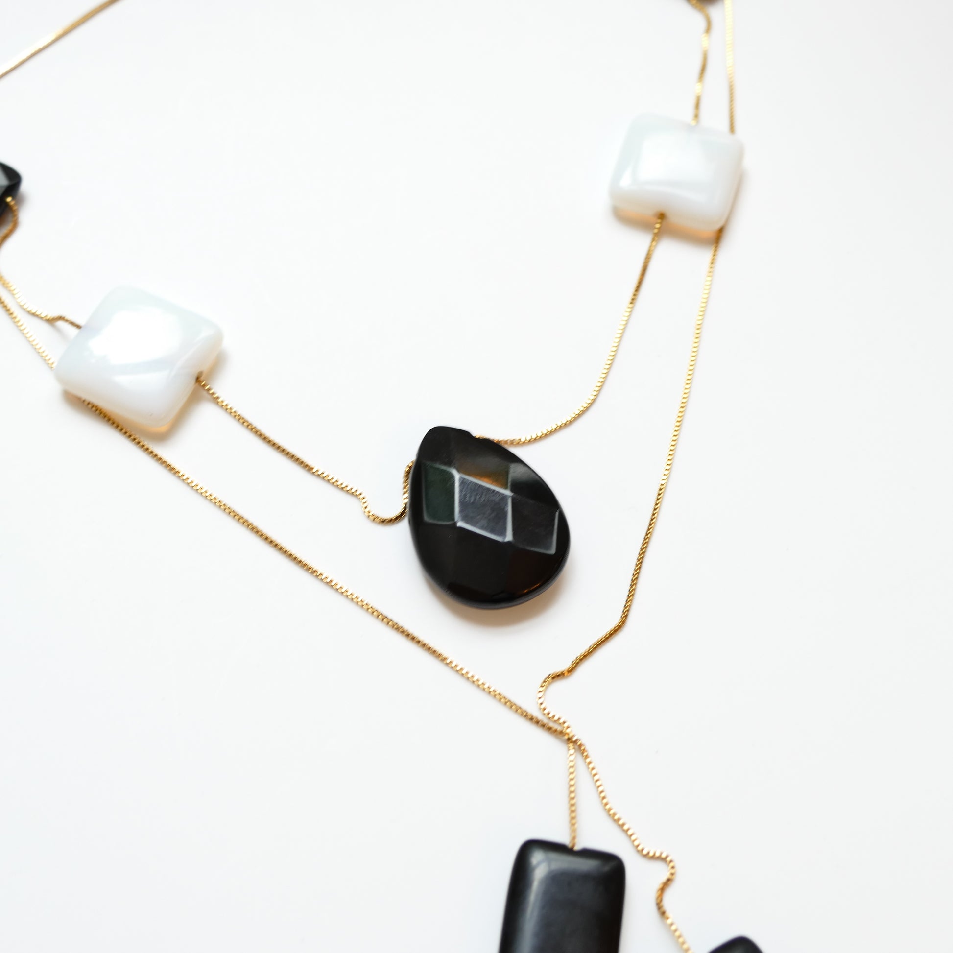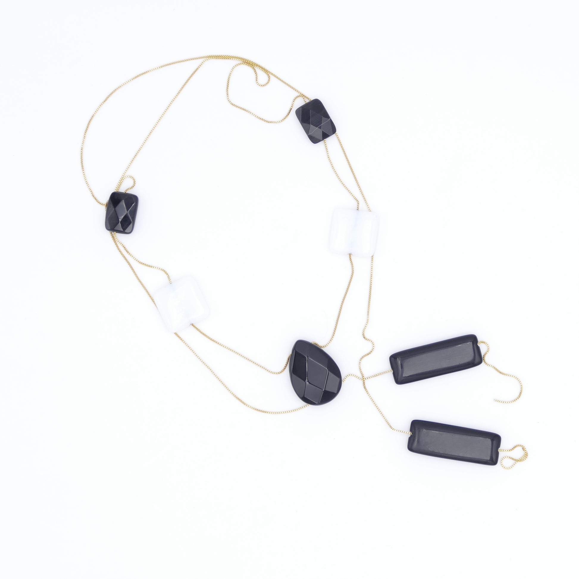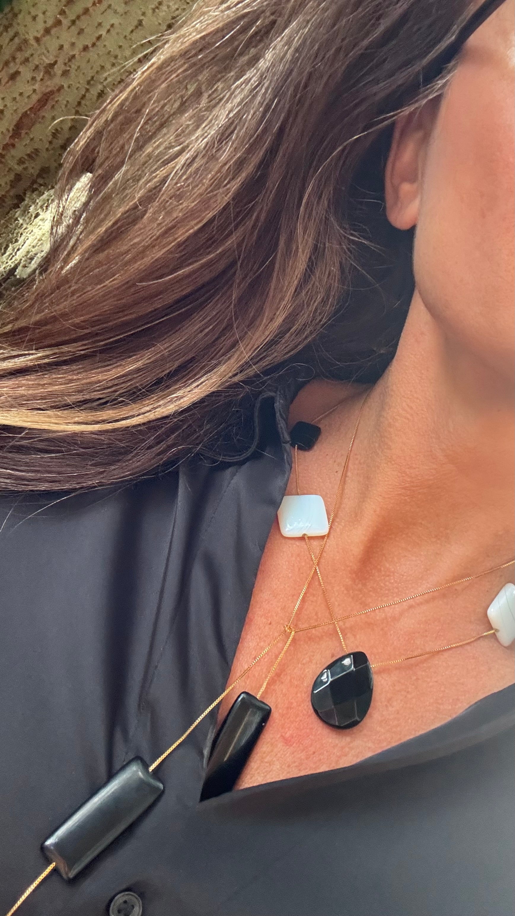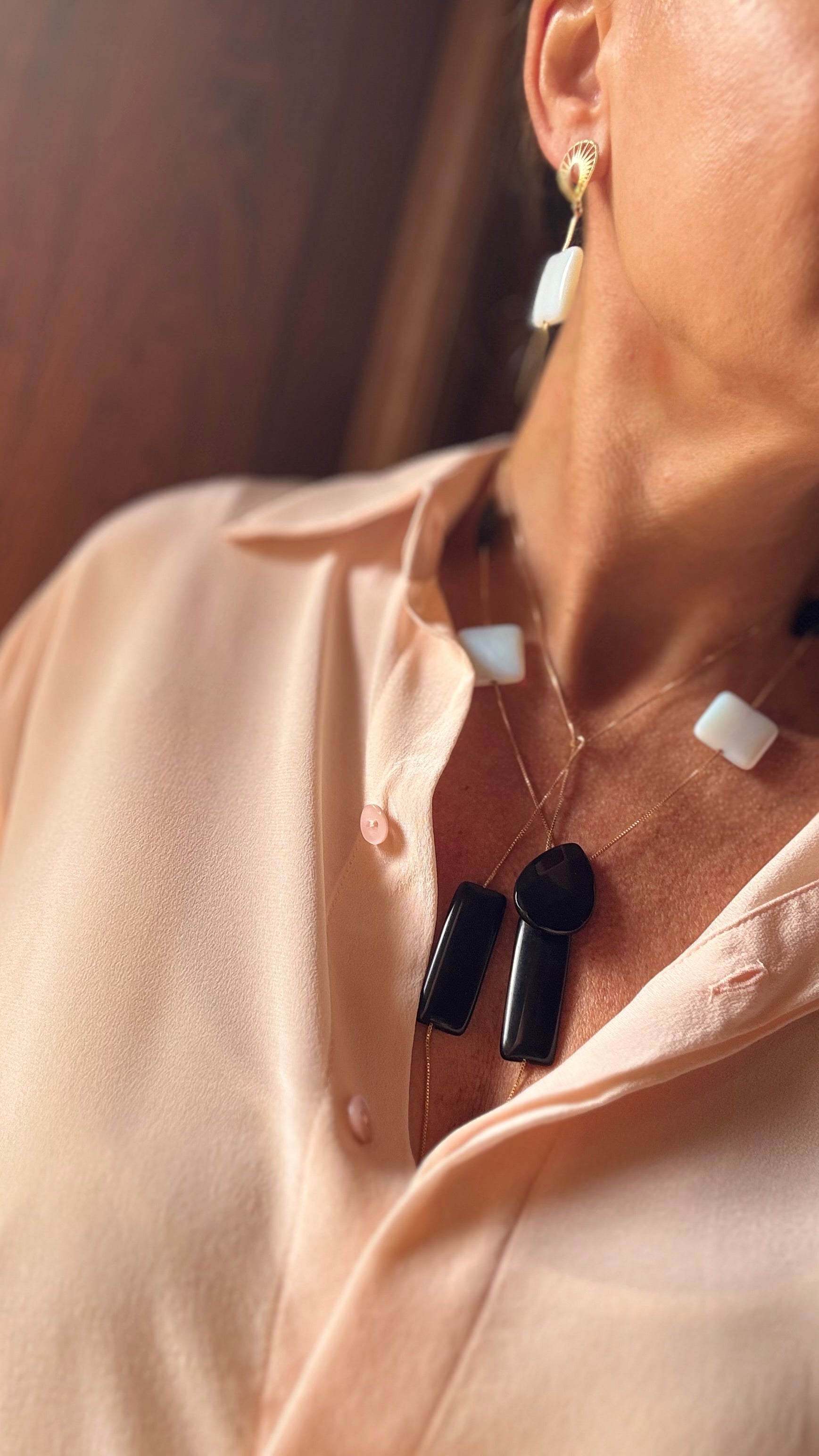 Entdecken Sie das elegante Gina Set – eine vergoldete Kette mit funkelndem Analcim-Stein und tiefschwarzen Onyx-Details in harmonischer Formensprache. Das Set wird durch passende Ohrringe vervollständigt, die Ihren Look perfekt abrunden. Jedes Stück verbindet zeitlose Eleganz mit modernem Design und schafft eine kohärente Schmuckkollektion für jeden Anlass. Lassen Sie sich von der Raffinesse dieses durchdachten Ensembles verzaubern.