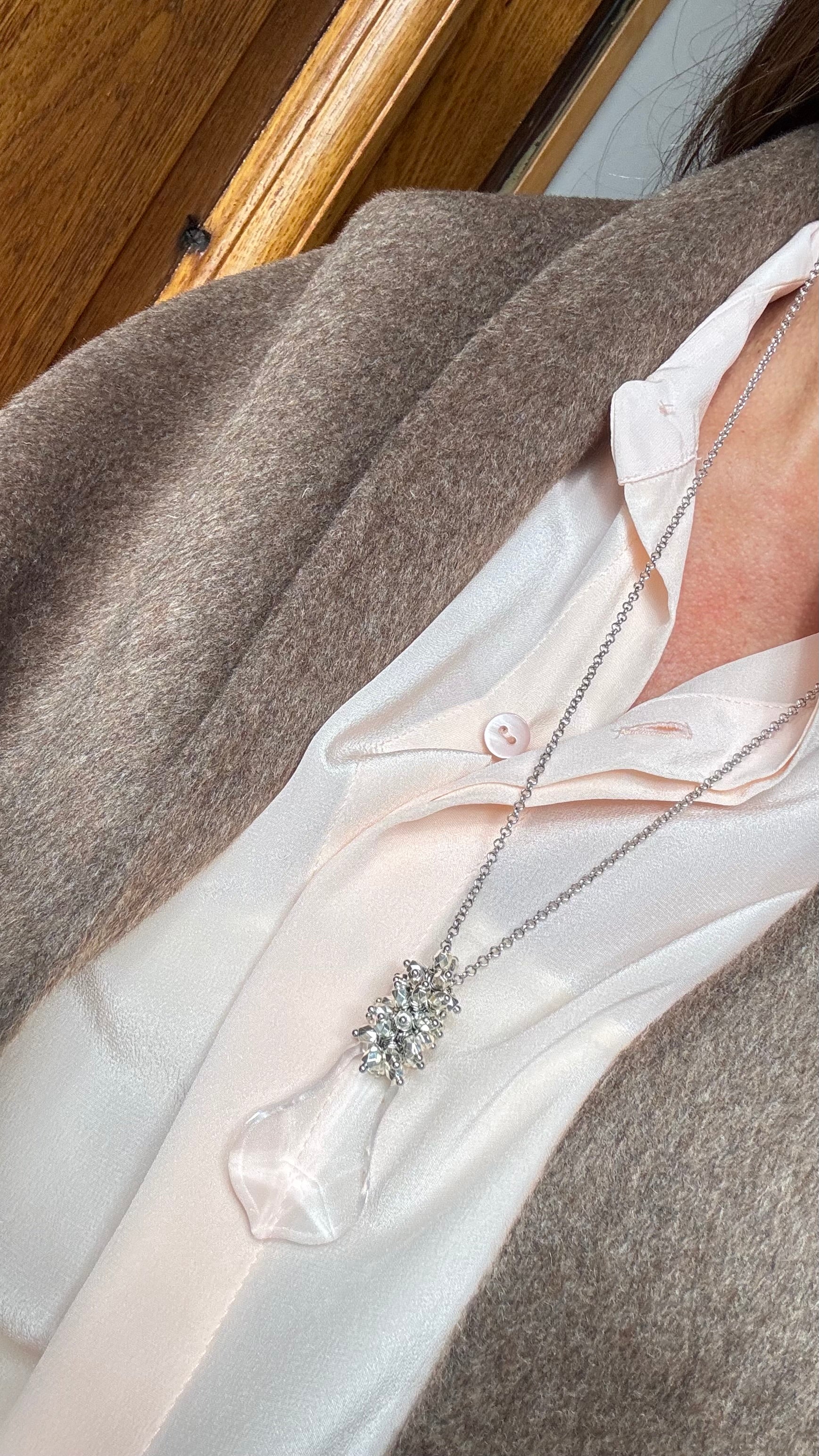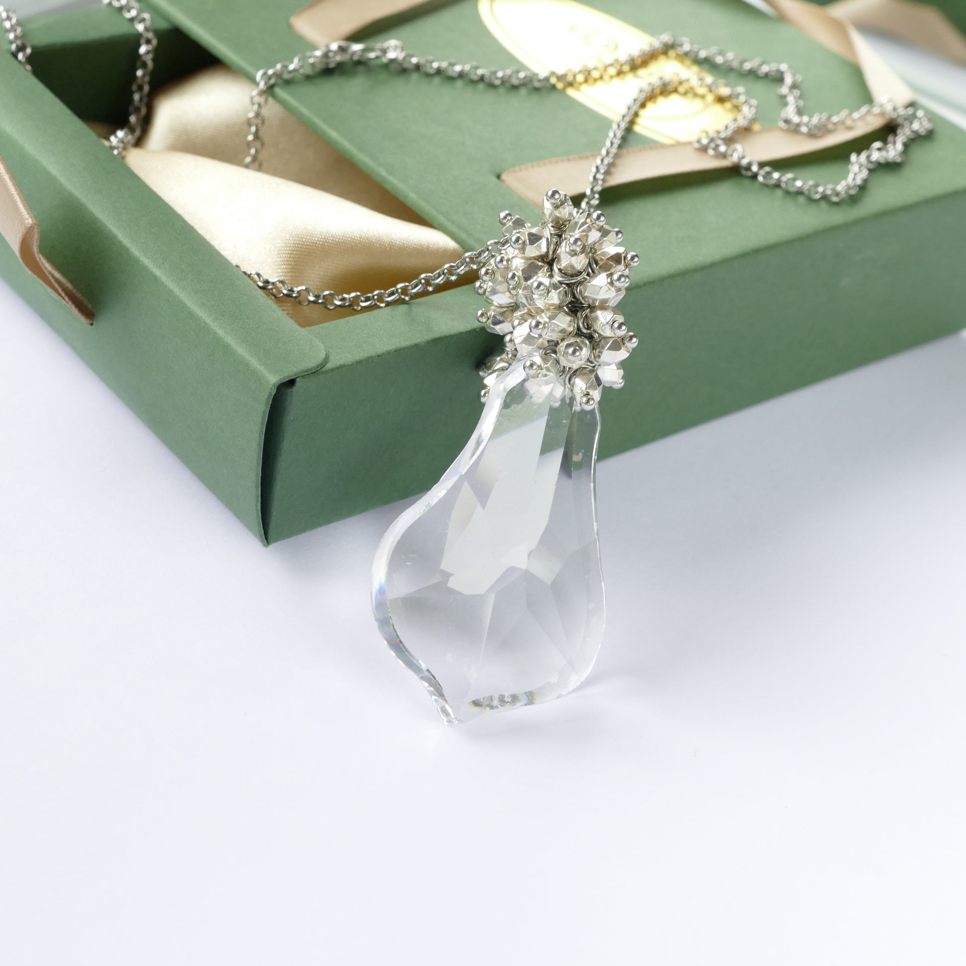 Die Greta Kristall Kette verzaubert mit ihrem opulenten, klar-transparenten Kristallanhänger, der in faszinierender Form strahlt. Ein verspieltes Accessoire, das jedem Outfit einen funkelnden Akzent verleiht und deine Persönlichkeit zum Leuchten bringt. Perfekt für alle, die Stil mit einem Hauch von Extravaganz lieben!