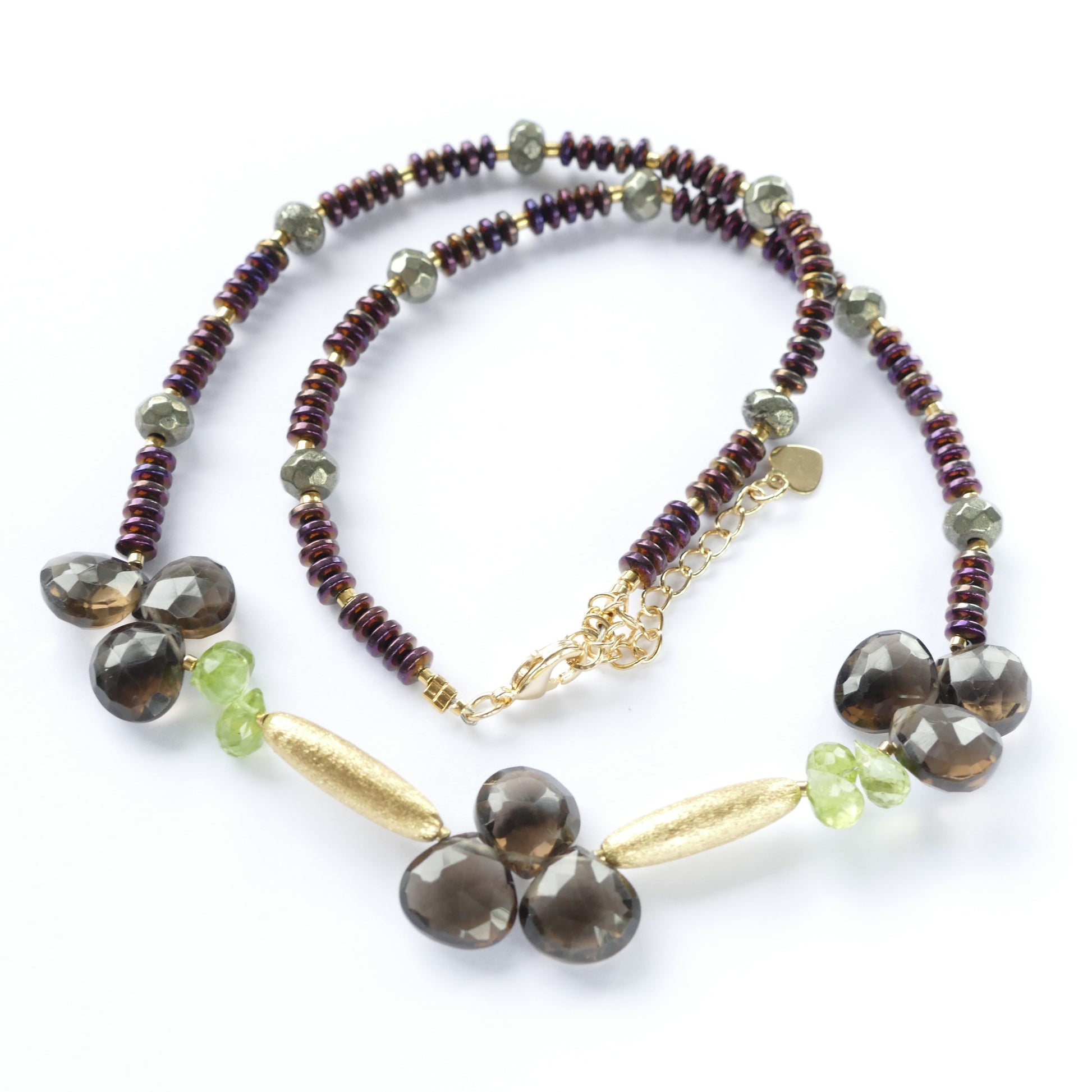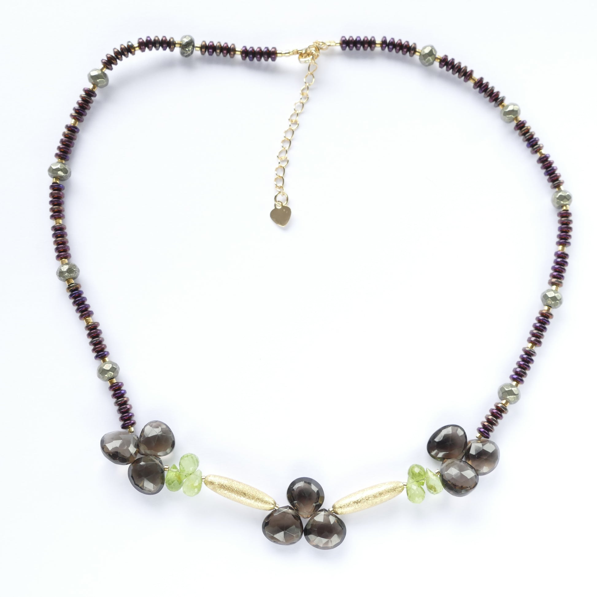 - Edelsteine Kette, Rauchquarz, Grüne Peridot, Grauen Hämatit.