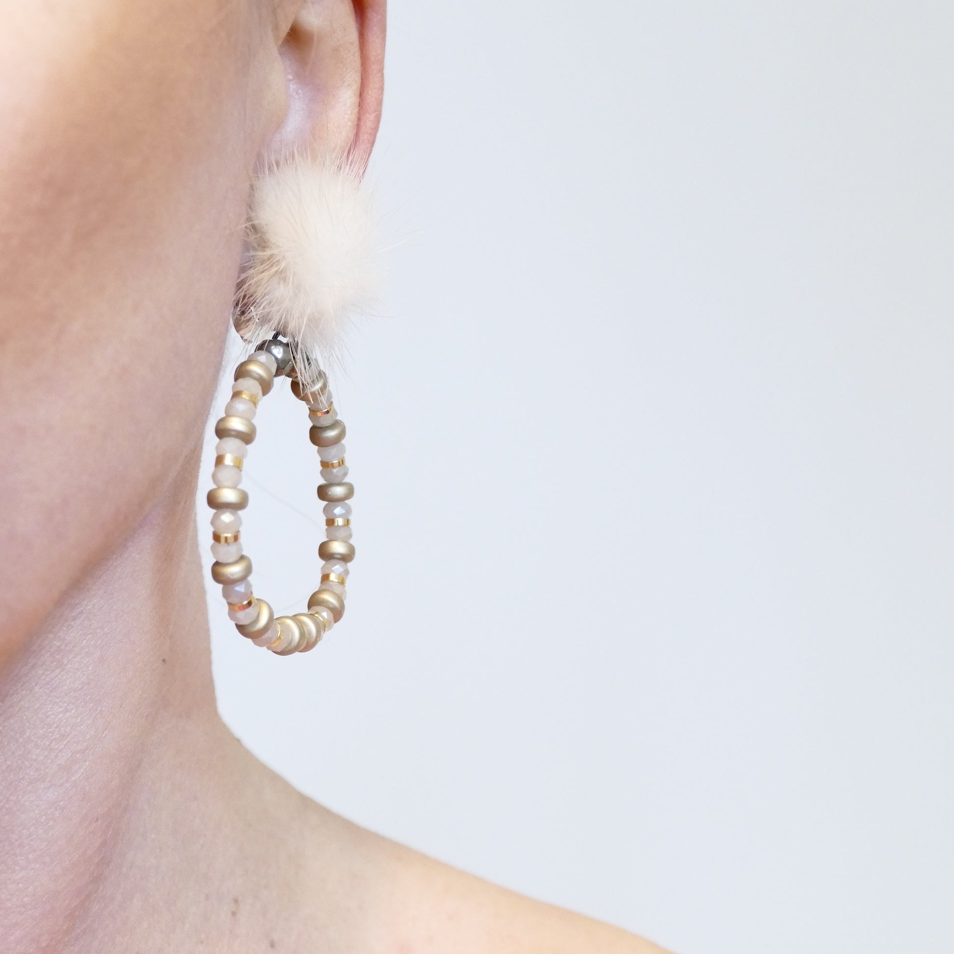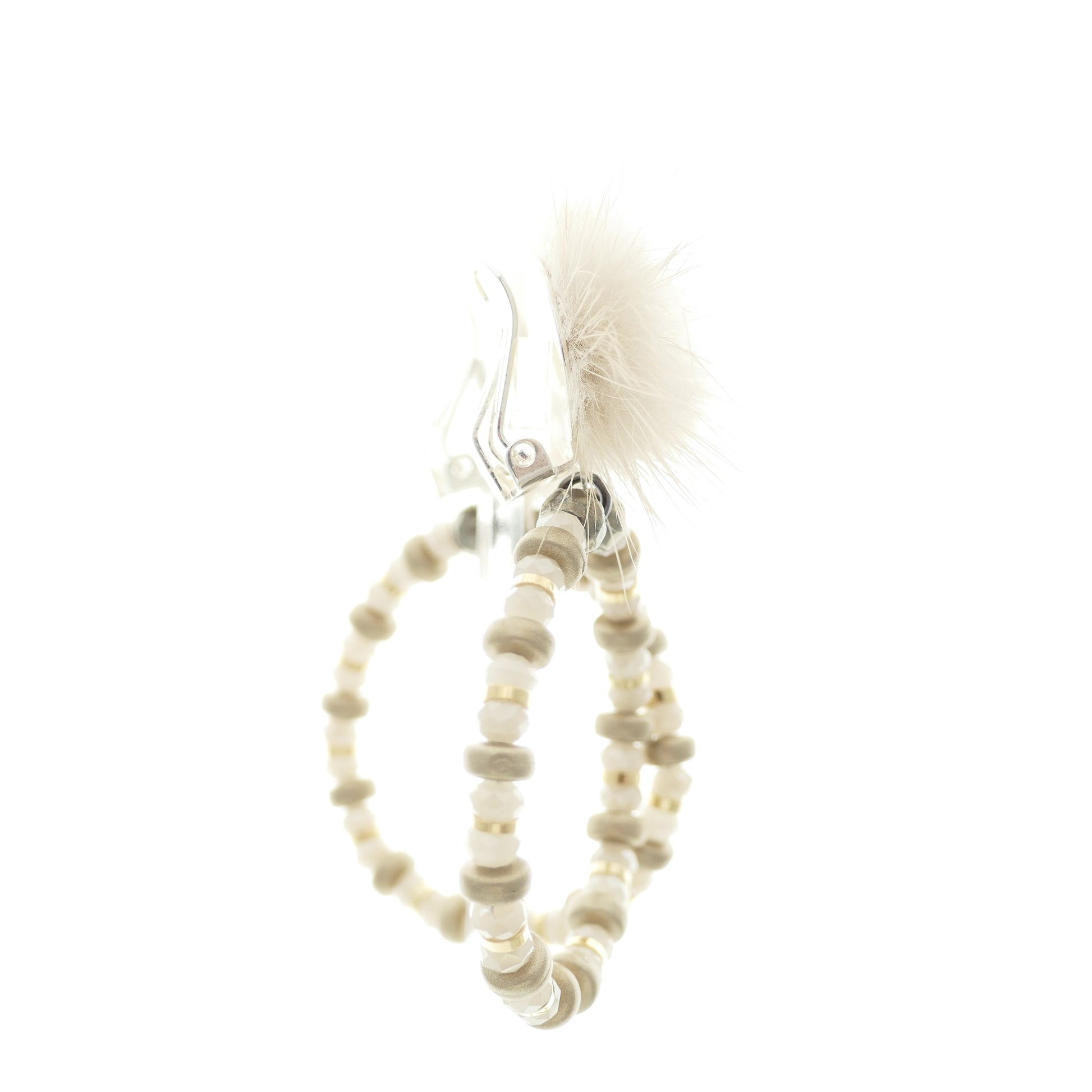 - Ohrringe Ohrclips Versilbert, Glasperlen, Fell-Pelz.