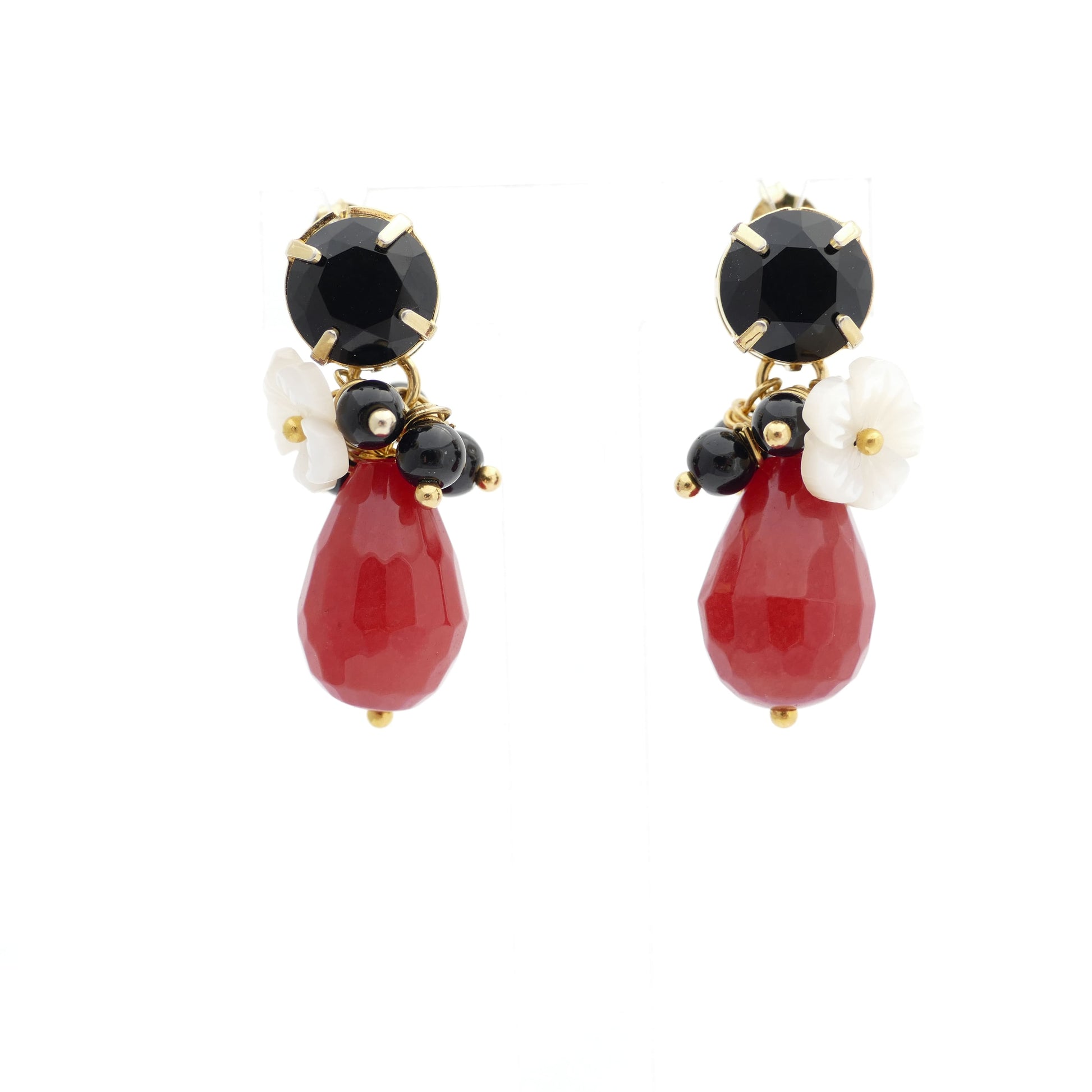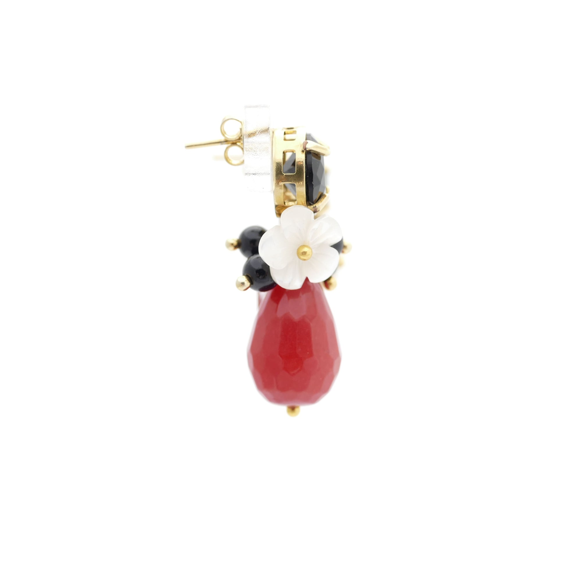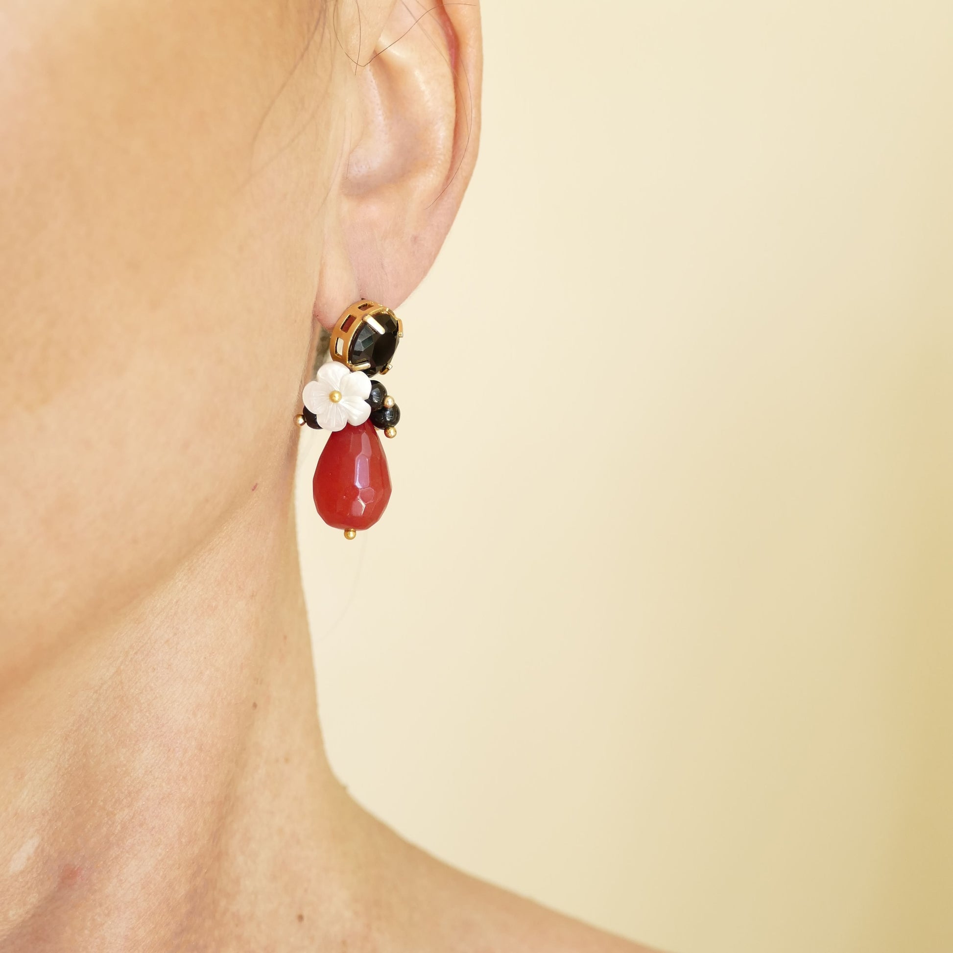 Karneol Ohrringe Gold Mit Onyxstein und Perlmutt Blüte
