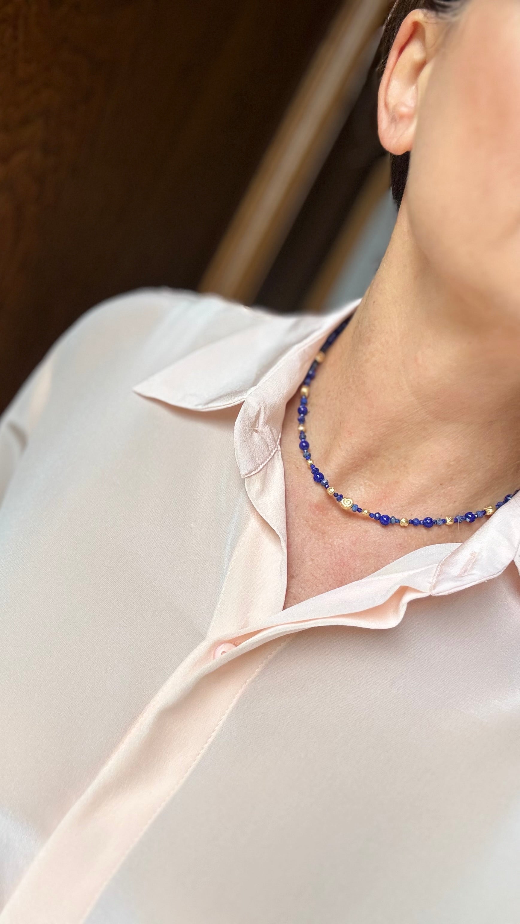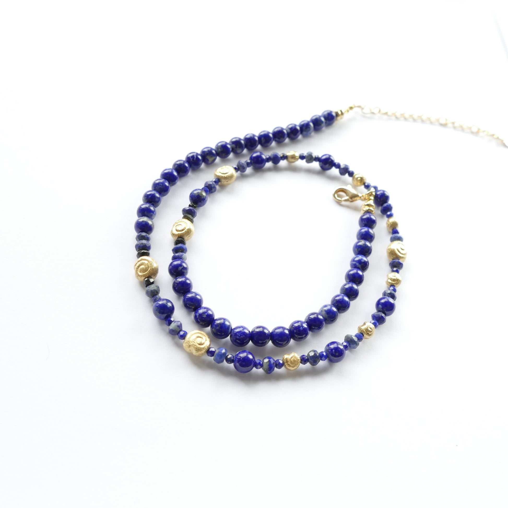- Edelsteine Kette, Lapislazuli und Silber-Vergoldetem.