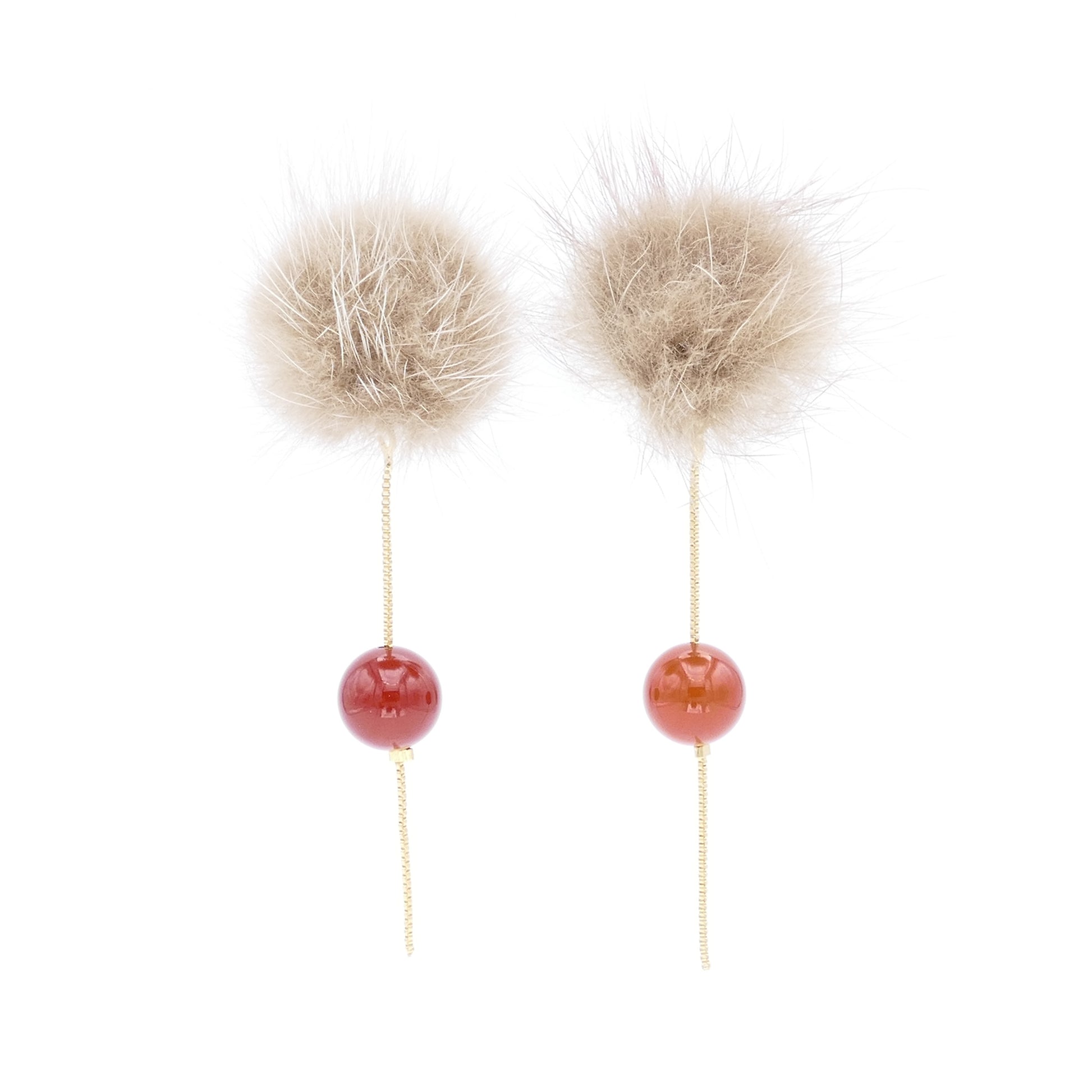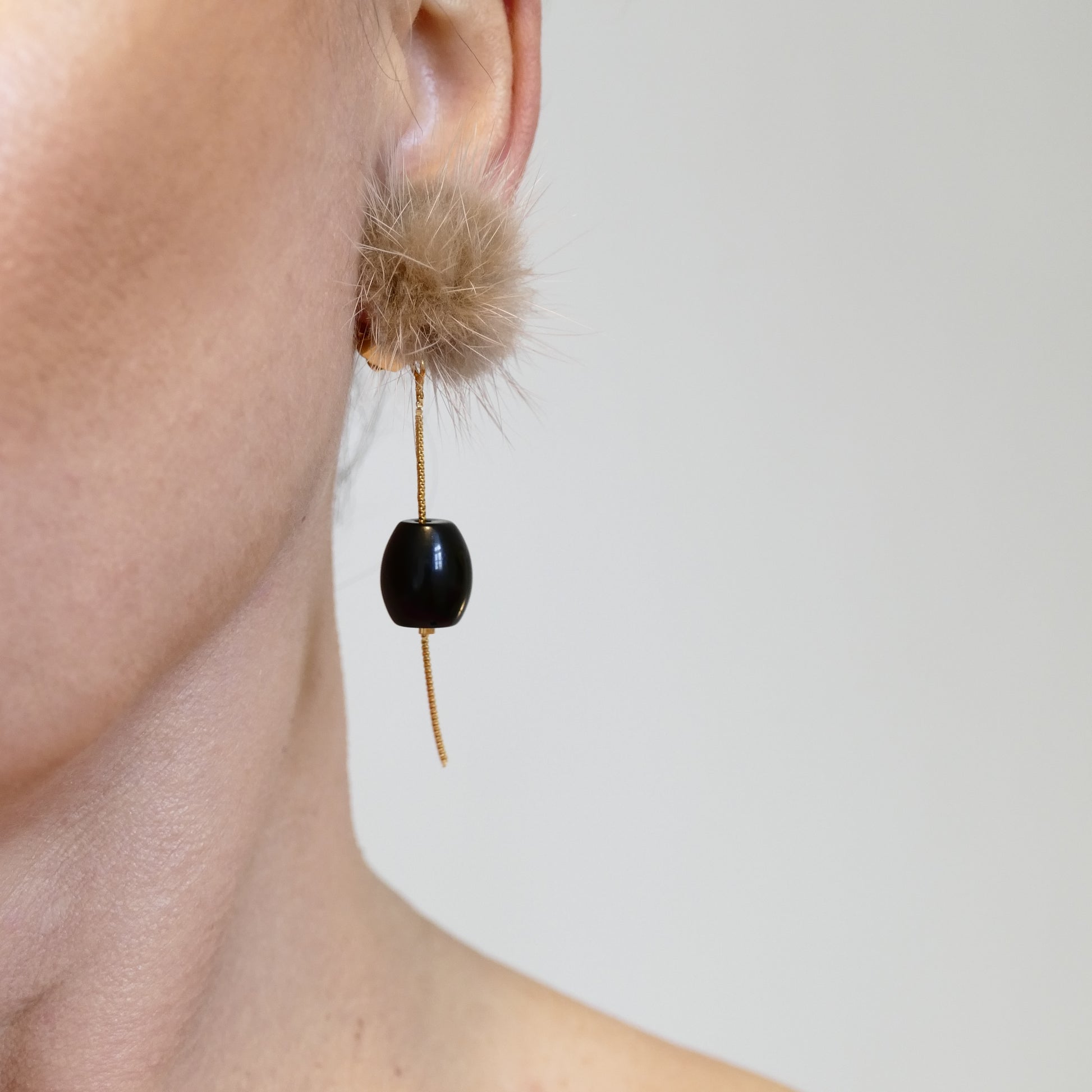 - Ohrringe Ohrclips Vergoldetem, Stein, Fell-Pelz.