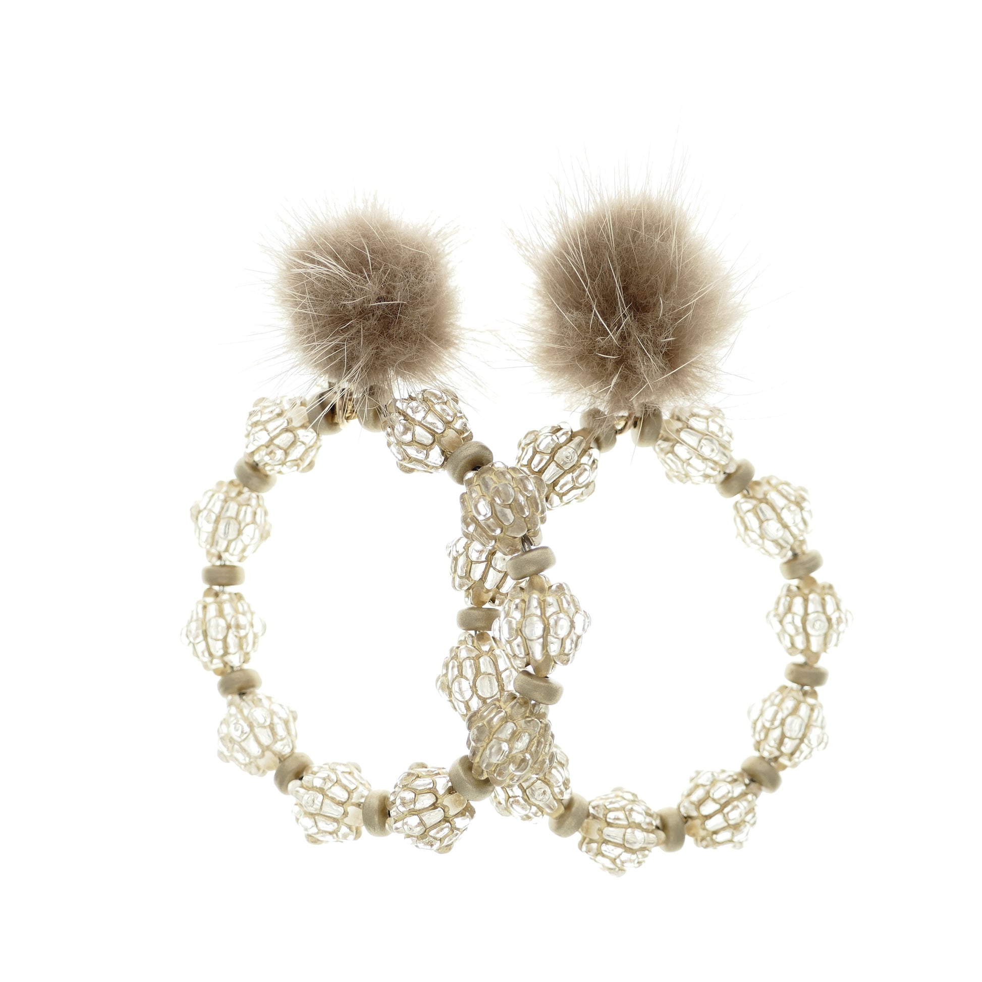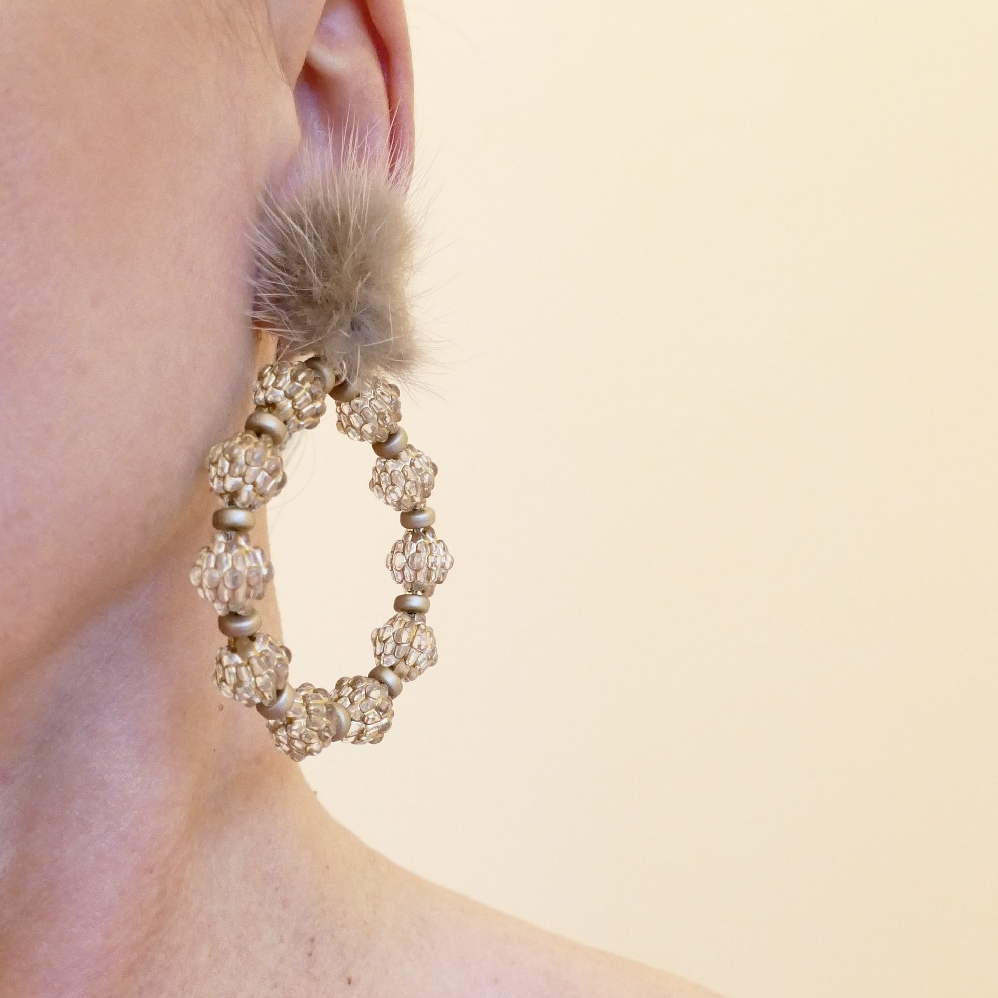 - Ohrringe Ohrclips Versilbert, Artkunsperlen, Fell-Pelz.