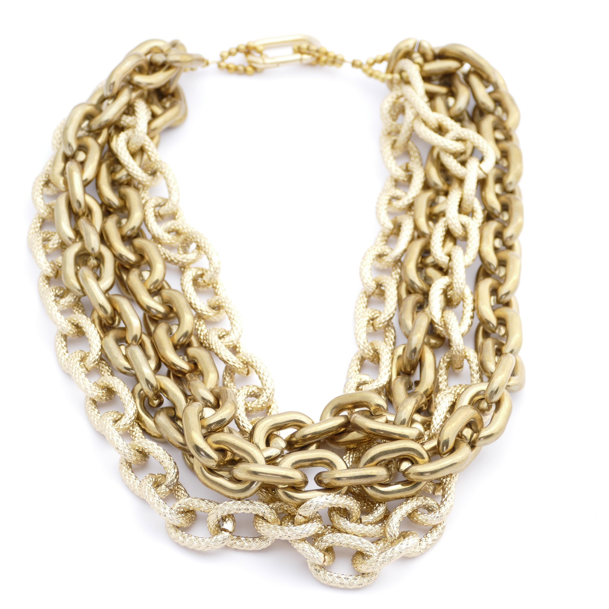 Opulente- Ringe Collier aus Alt Goldener Farbe mit verschiedenen Formen und Nuancen präsentiert Catia Levy, die auf die Trendfarbe Gold!
