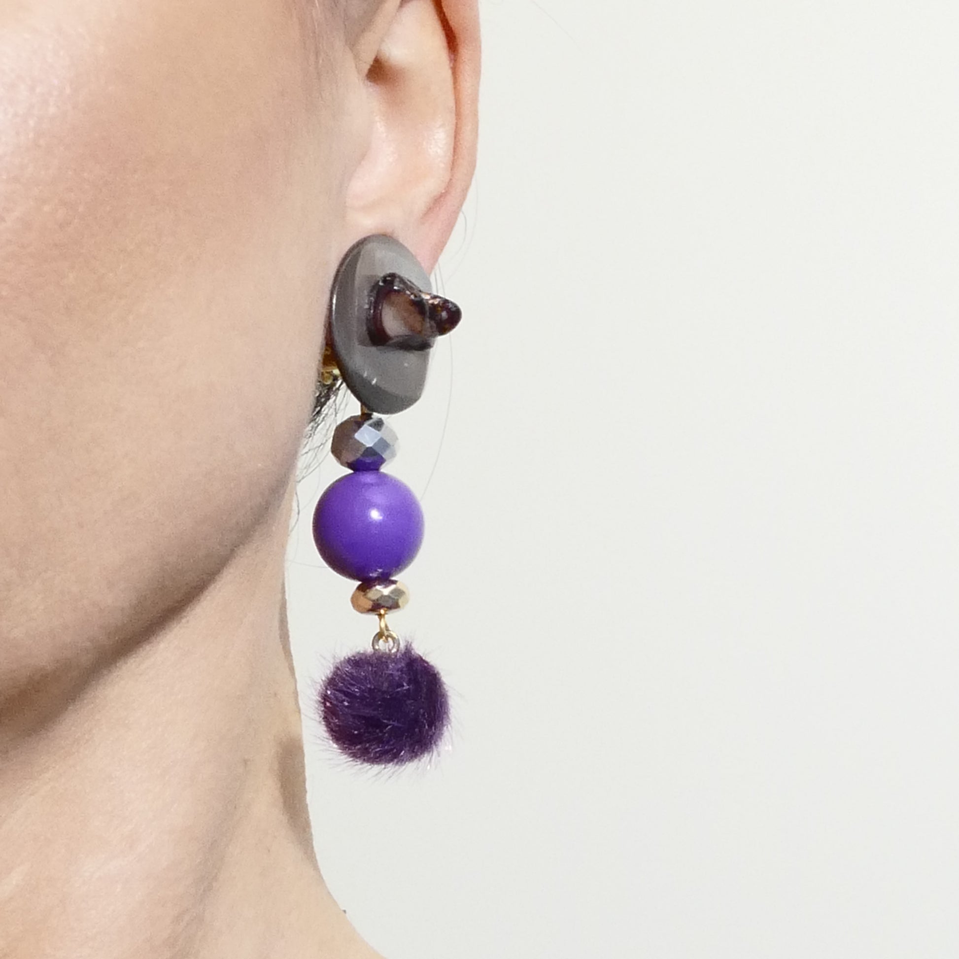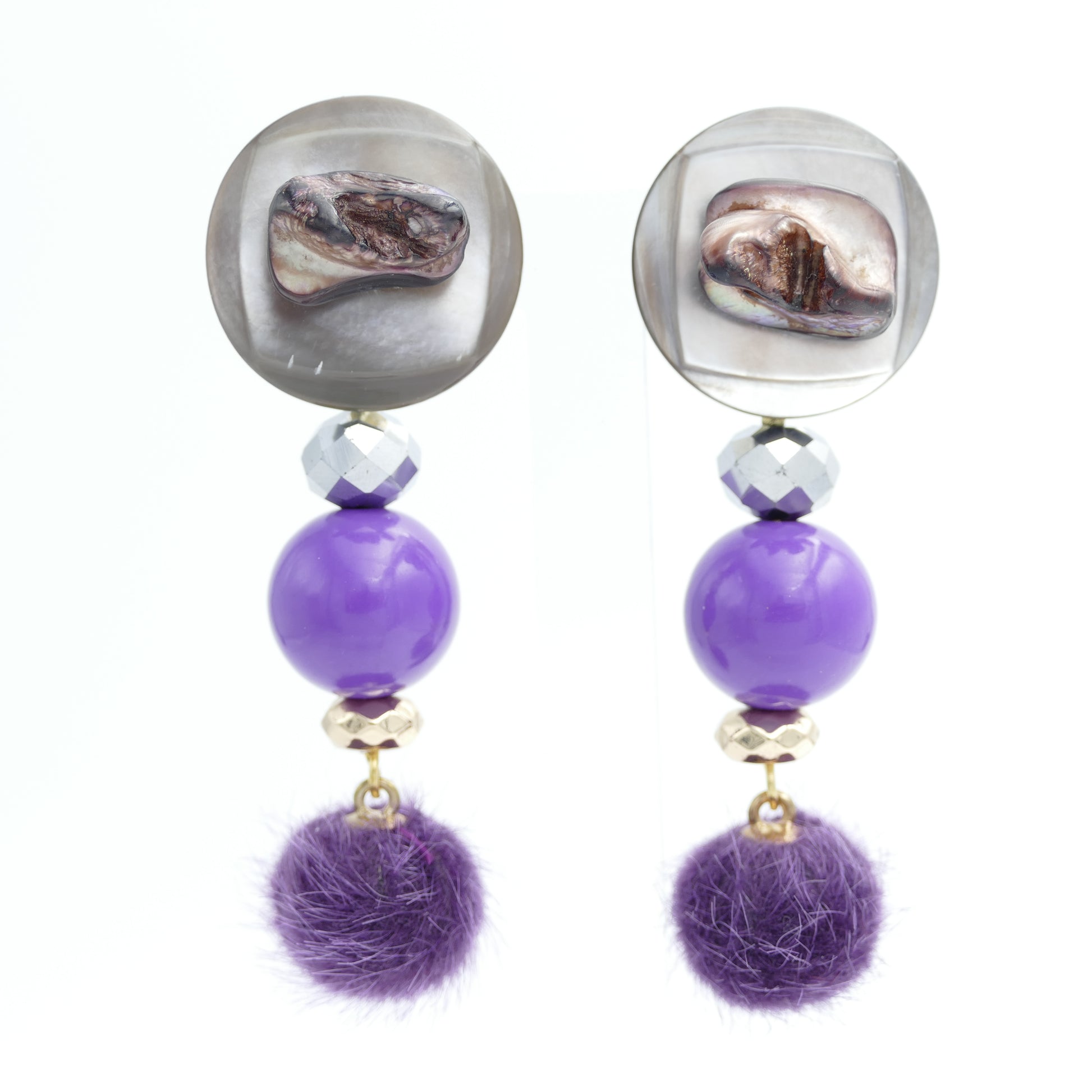 Modeschmuck Ohrclips Bommel mit Perlmutt Lila Perle