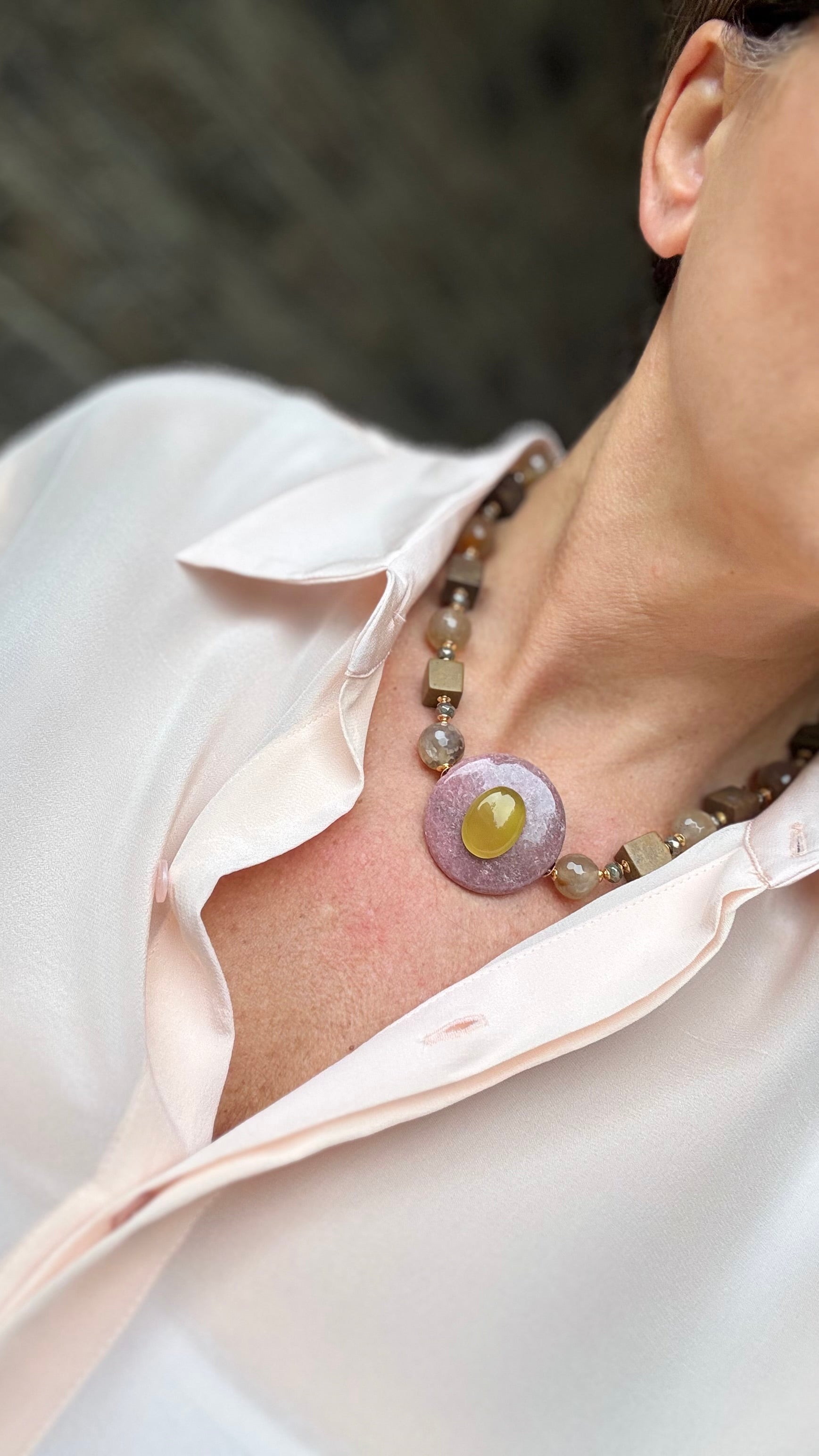 Die Nena Kette vereint die natürliche Eleganz von Hämatit und Achat in einem zeitlosen Schmuckstück. Jeder Stein strahlt eine dezente Tiefe und Raffinesse aus und verleiht Ihrem Look eine besondere Ausstrahlung. Perfekt für stilbewusste Trägerinnen, die auf subtile Weise Individualität und Klasse zeigen möchten.