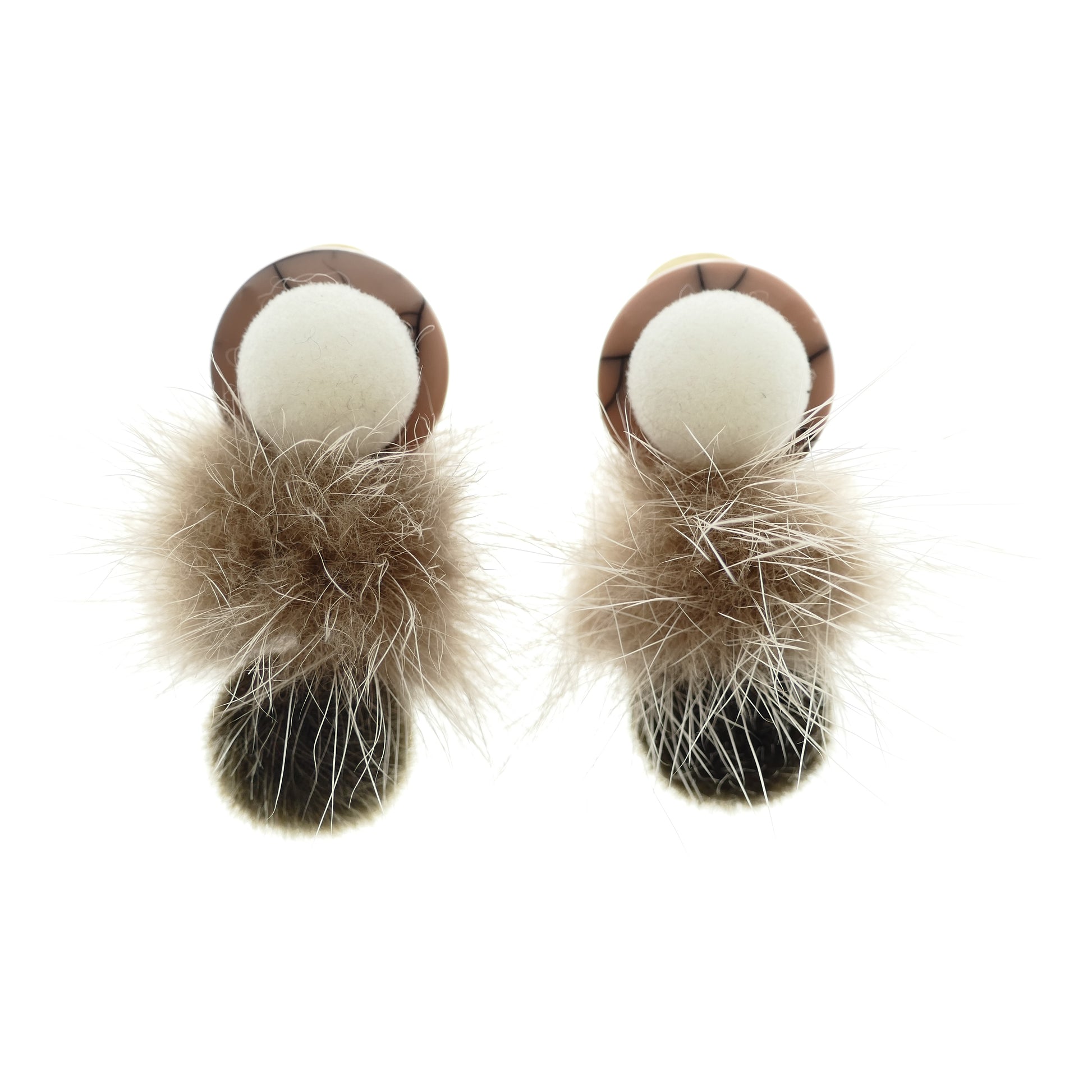 Ohrringe Ohrclips Vergoldet Mit Grüne Bommel Beige Fell Pelz