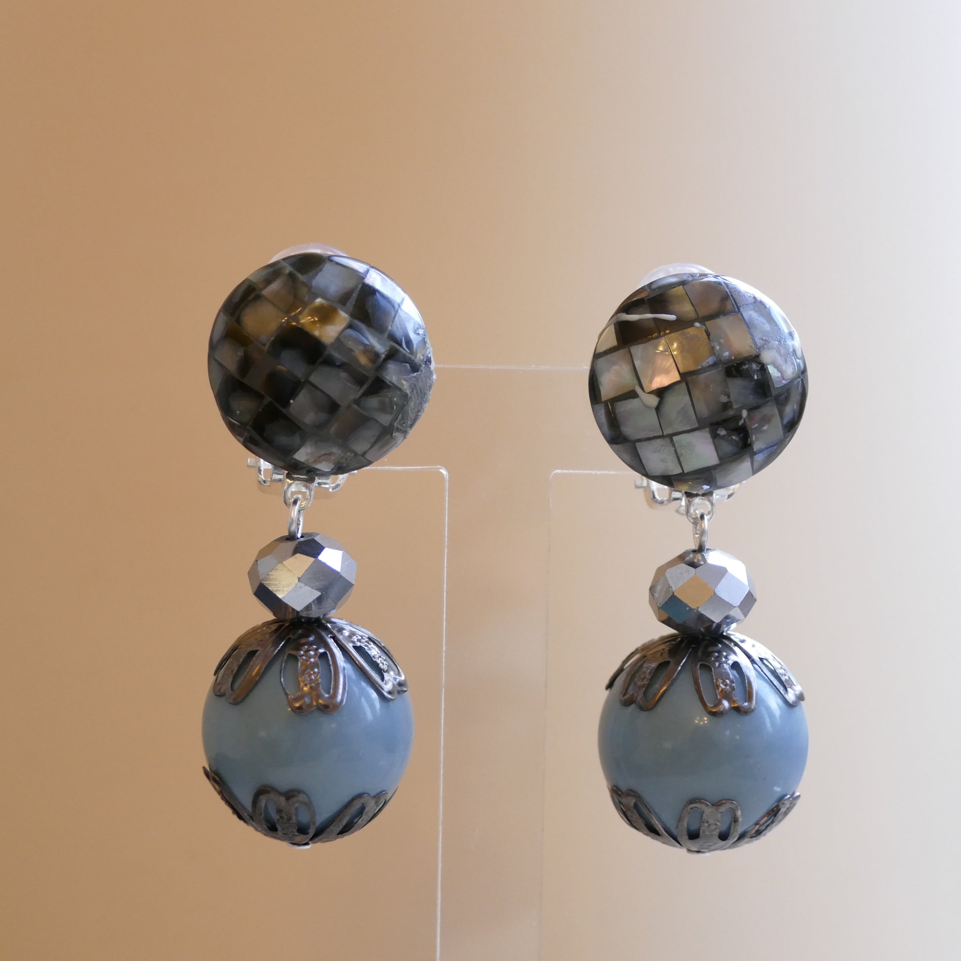 Ohrschmuck Clips Ama in Blau & Grau Farbe