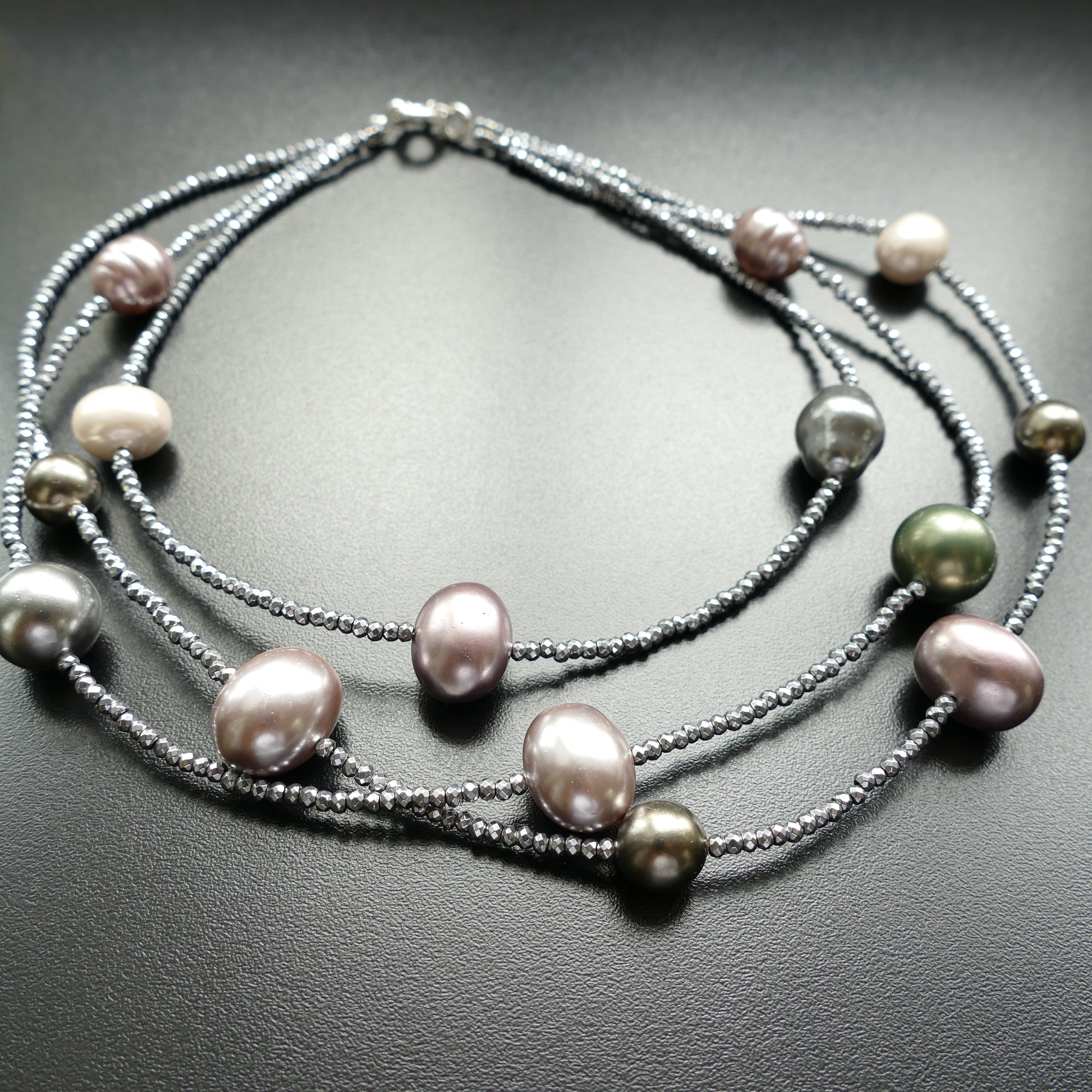 - Perle- Muschelperle-Glas , Hämatitperle.Silber -925.