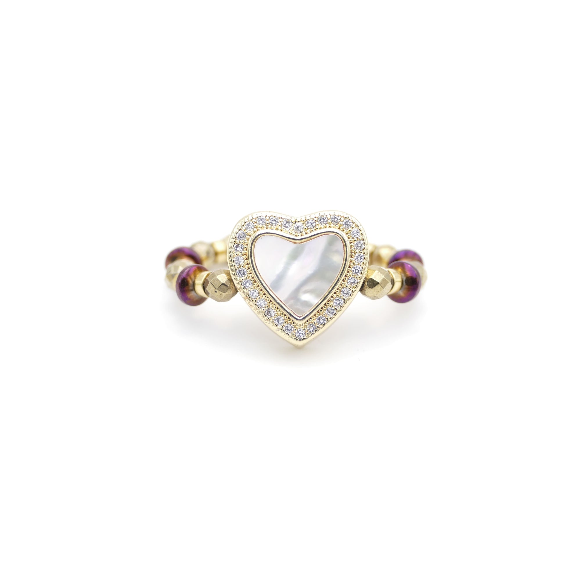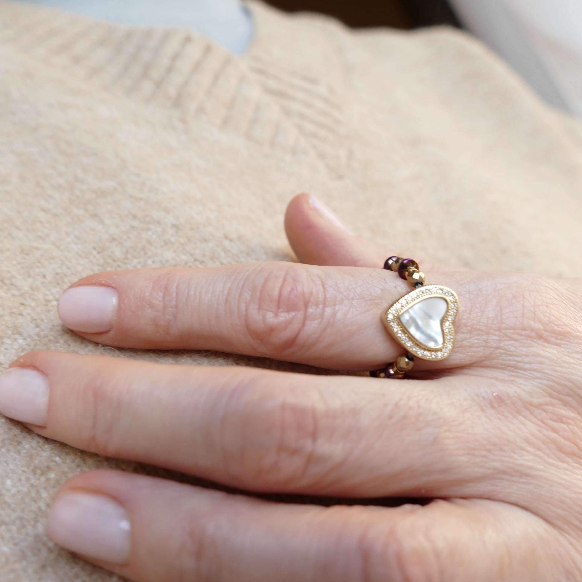 Eine Wunderschöne Geschichte von unsere Schmuck Kollektion Elara, mit Herzform aus Perlmutt-Perle, Zirkonia und Element aus Vergoldetem.