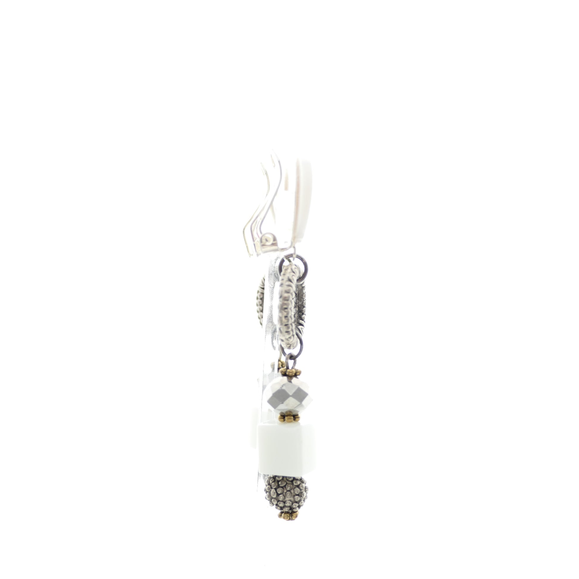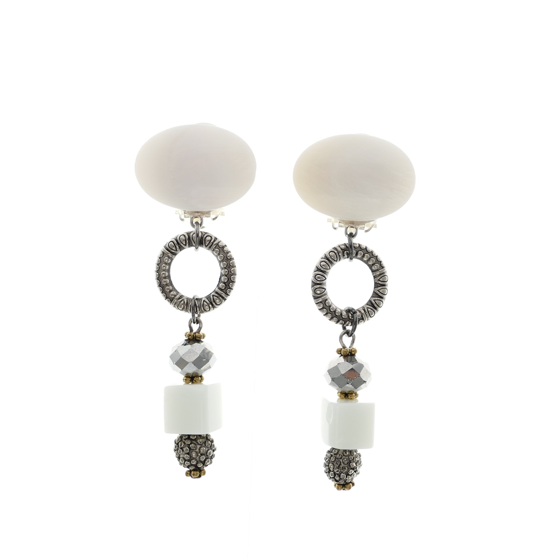 - Ohrringe Ohrclips Versilbert, Perlmutt, Glasperlen.