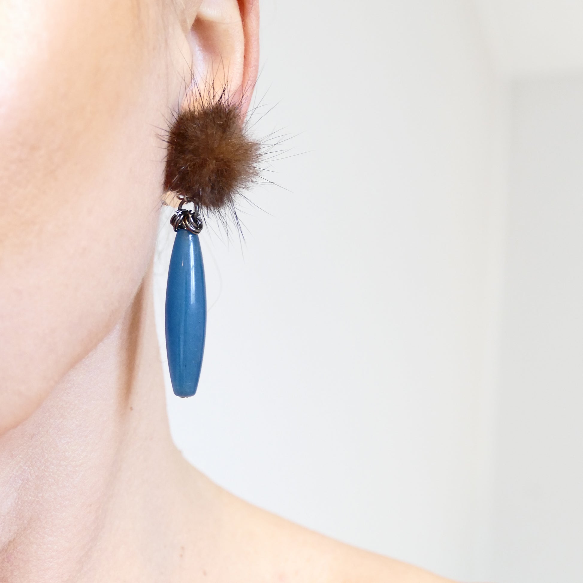 - Ohrringe Ohrclips Versilbert, Stein, Fell-Pelz.