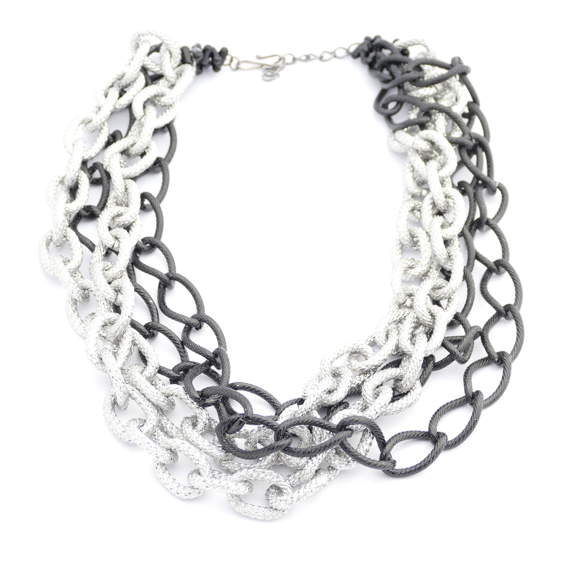 Modeschmuck Statement Necklace /extravagante Collier,Ösenkette, Gliederkette oval aus Silber und Schwarz Farben.