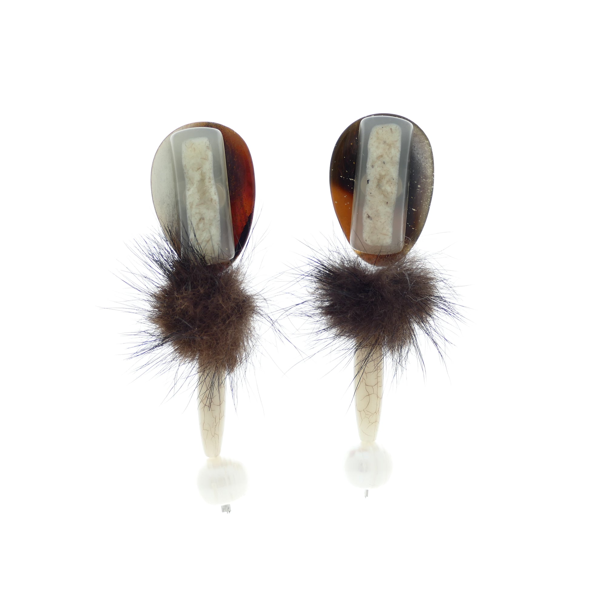 - Ohrringe Ohrclips Versilbert, echt Perle-Süßwasserperlen, Kunstperle, Pelz-Fell.