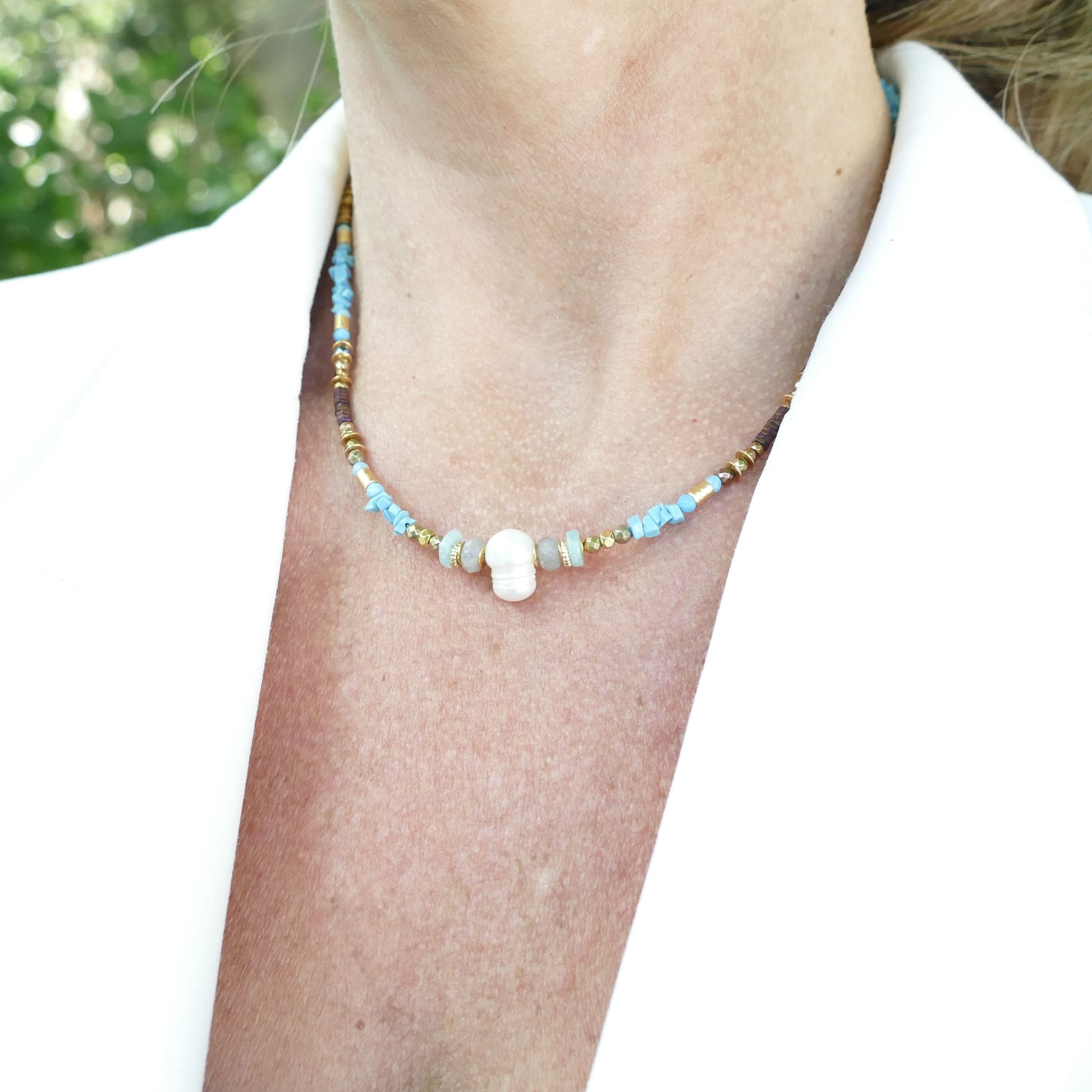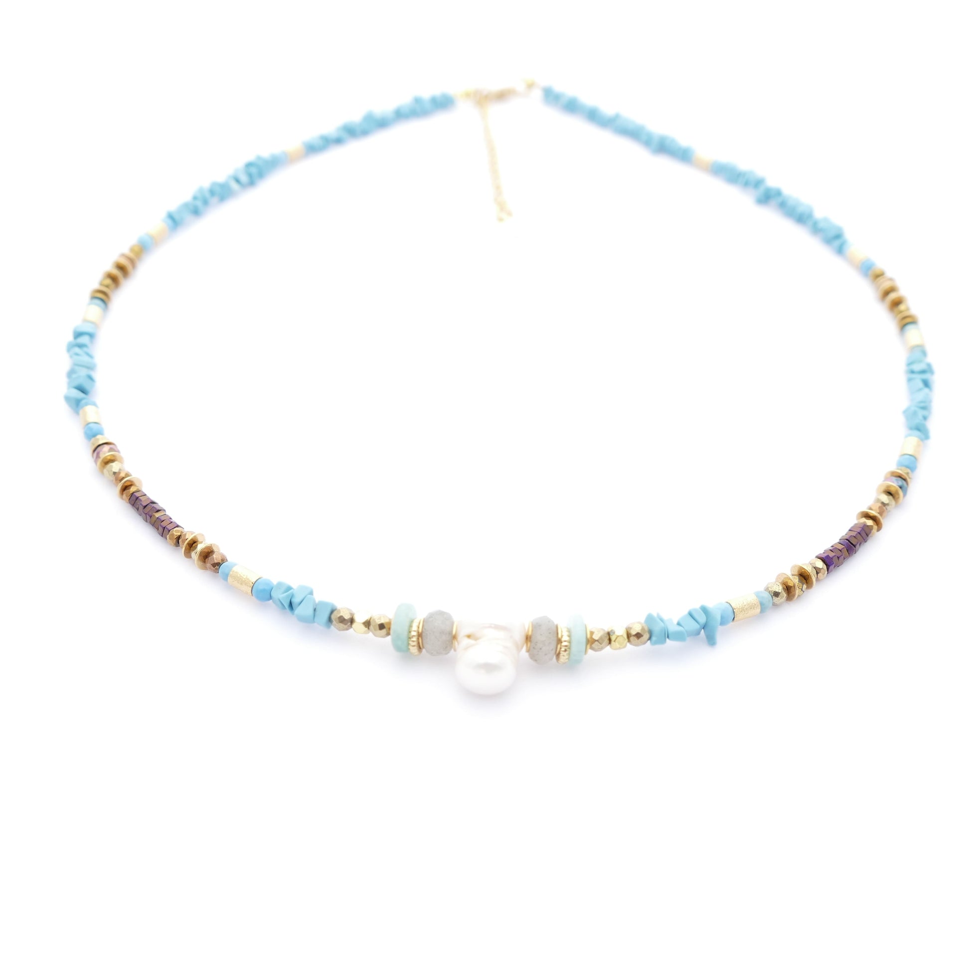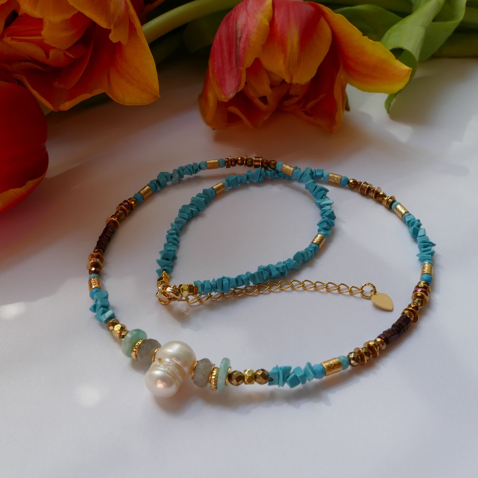 Türkis Kette Mit Labradorit Stein Und Barock Perle